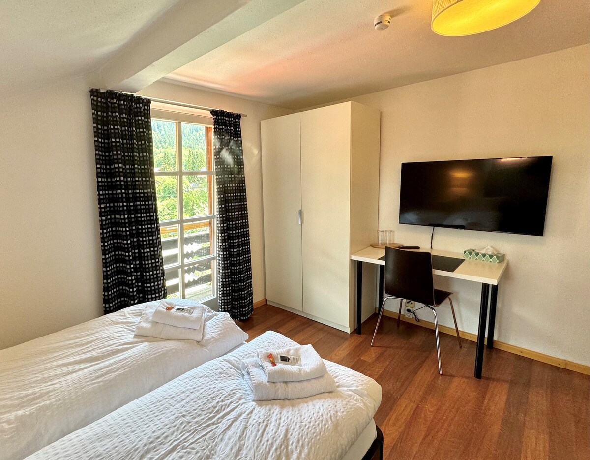 Mountain view • Bed linens • Smoke alarm • Wifi • Hot water • Room-darkening shades • TV • Heating • Hair dryer • Courtyard view