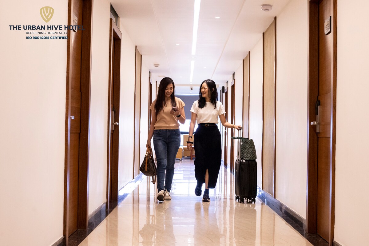 The Urban Hive Hotel is offering accommodations in Belgaum. This 3-star hotel offers a concierge service and a tour desk. The property has a 24-hour front desk, airport transportation, room service and free WiFi. At the hotel rooms are equipped with air conditioning, a desk, a patio with a city view, a private bathroom, a flat-screen TV, bed linen and towels. The Urban Hive Hotel provides some accommodations with garden views, and every room has an electric tea pot. The rooms will provide guests with a fridge. The daily breakfast offers à la carte, continental or American options. The accommodation has a sun terrace. Belgaum Airport is 6.8 miles from the property.