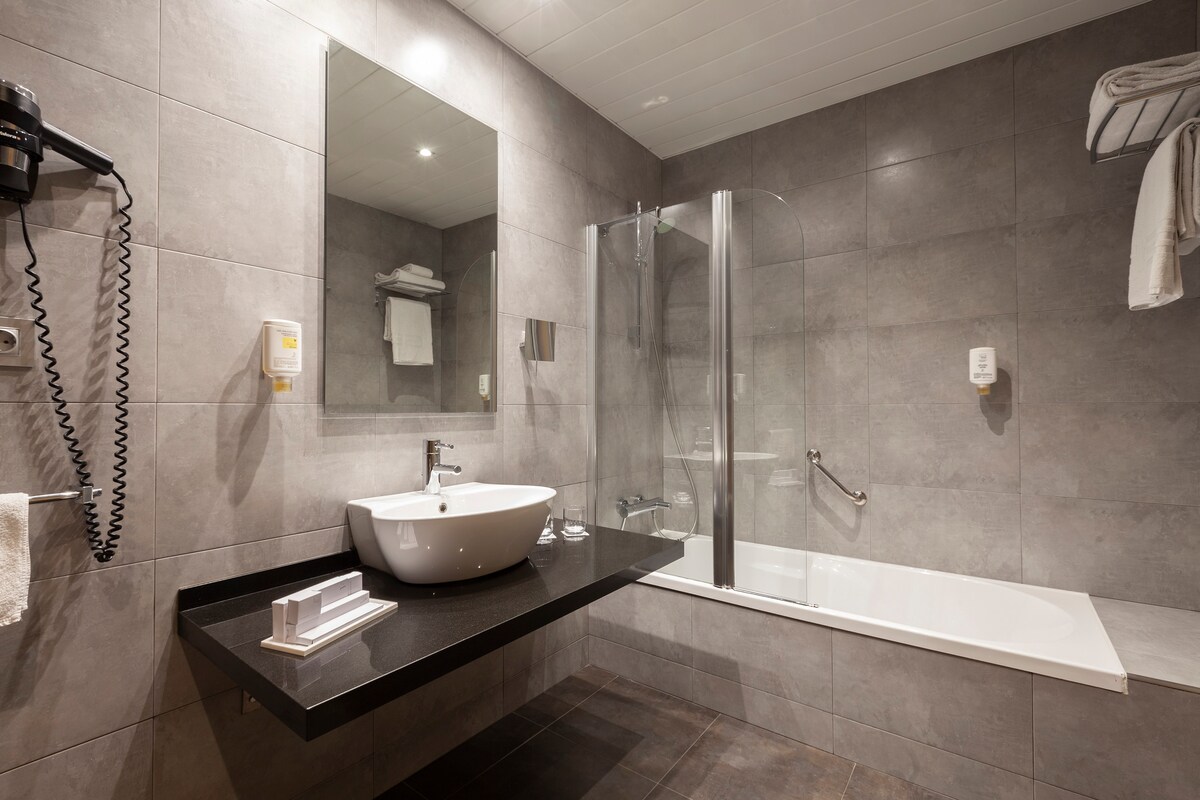 Barceló Bilbao Nervión offers 350 accommodations with minibars and safes. Beds feature down comforters and premium bedding. A pillow menu is available. LCD televisions are featured in guestrooms. Bathrooms include bathtubs or showers, slippers, complimentary toiletries, and hair dryers.