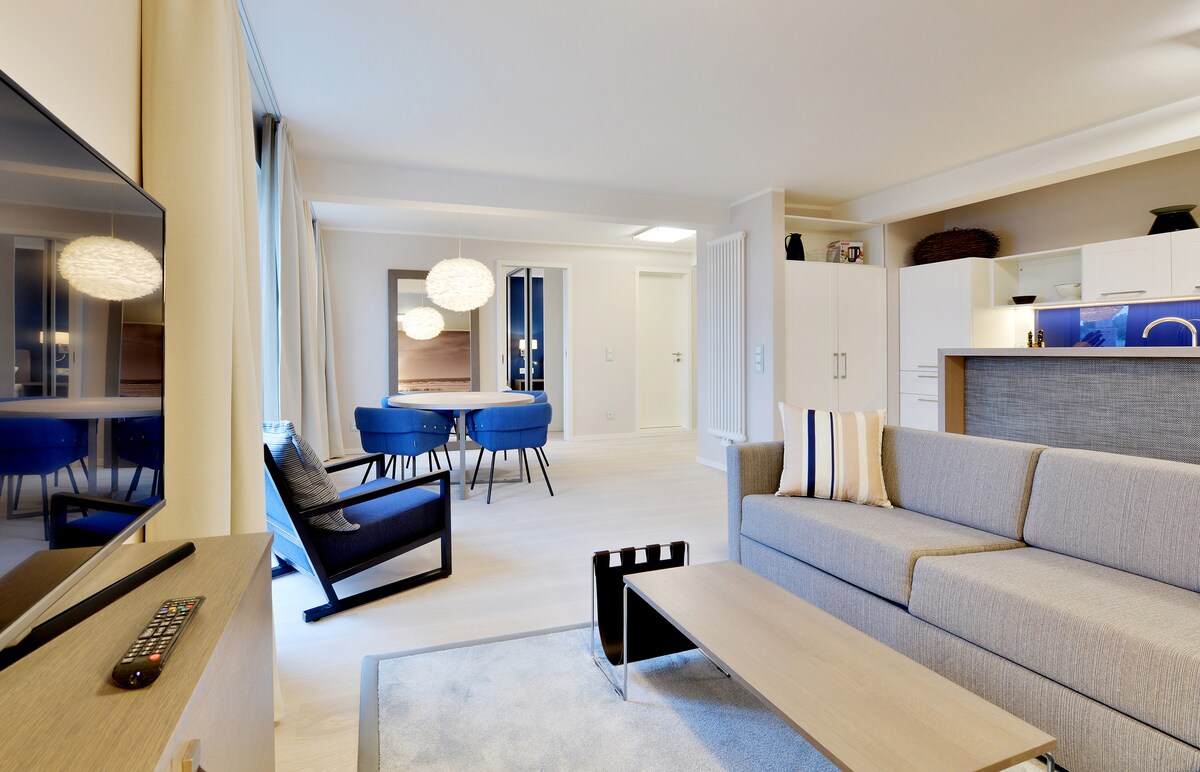 Aparthotel MEERSINN Deluxe Suite is located in Binz, just a 7-minute walk from FKK Beach Fischerstrand and 1.6 miles from Prora Beach. Guests staying at this apartment have access to a balcony. Free Wifi is available throughout the property and Binz Beach is a 4-minute walk away. The apartment consists of 1 bedroom, a living room, a fully equipped kitchenette with a dishwasher, and 1 bathroom with a bath and a hair dryer. A flat-screen TV is available. The accommodation is non-smoking. If you'd like to discover the area, cycling is possible in the surrounding area, and the apartment can arrange a bicycle rental service. Störtebeker Festival is 15 miles from Aparthotel MEERSINN Deluxe Suite, while Ruegendamm is 26 miles from the property.