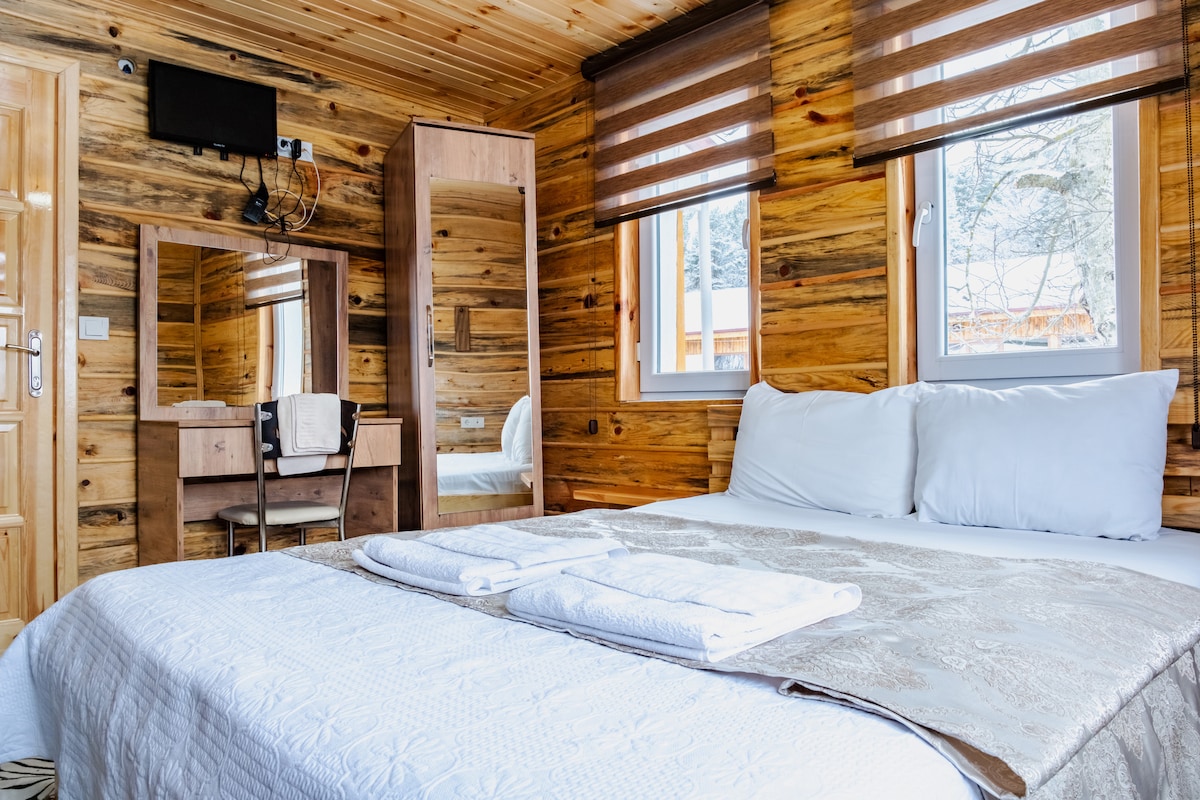 Abant Zumrut Dag Evi offers 9 accommodations with indoor private hot tubs and fireplaces. Beds feature premium bedding. 55-inch LED televisions come with premium satellite channels.