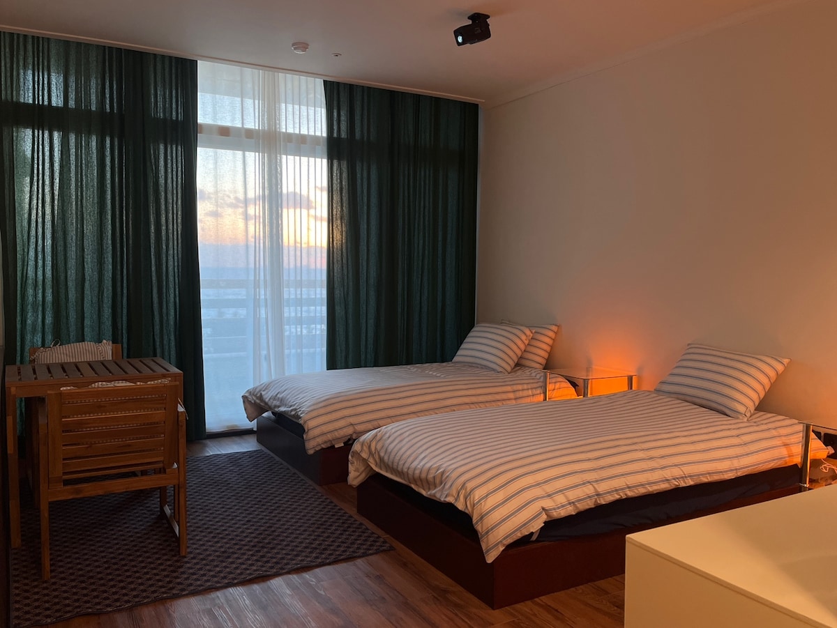 Day One Stay provides beachfront accommodations in Boryeong. The 2-star hotel has air-conditioned rooms with a private bathroom and free WiFi. The property is non-smoking throughout and is located a 11-minute walk from Daecheon Beach. All guest rooms in the hotel are equipped with a flat-screen TV. At Day One Stay every room comes with bed linen and towels. Muryangsa Temple is 17 miles from the accommodation, while Geumsa-ri Catholic Church is 24 miles away. Gunsan Airport is 41 miles from the property.