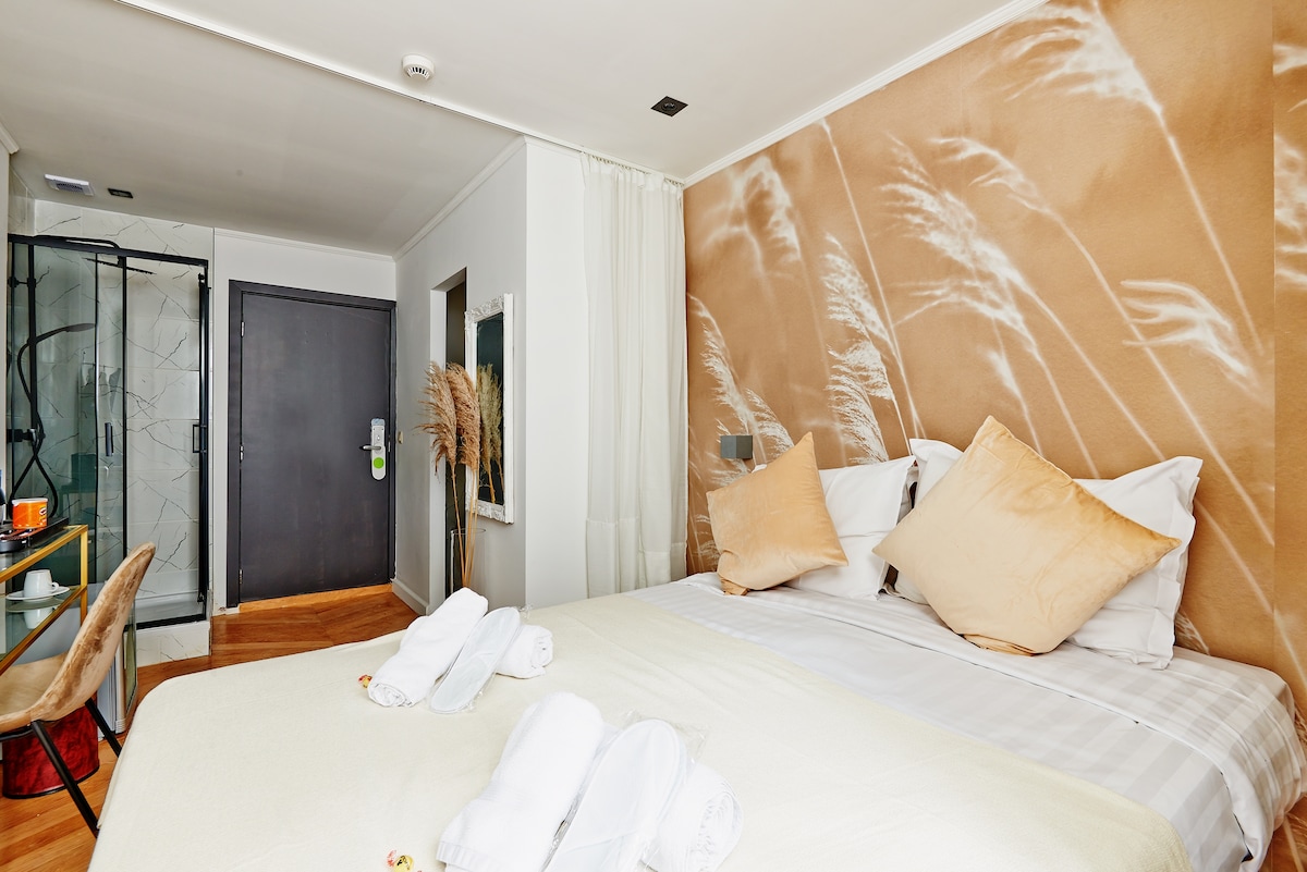 Our favourite, The Corner offers an upgrade from a queen to a king-size bed, includes one of our signature beanbags, and is located on a corner with views of the shopping street below. Of course, The Corner features The Usual private bathroom with rainfall shower and complimentary vegan amenities. Whether you’re a city tripper, business traveller, or digital nomad, our locations and relaxed atmosphere make each stay with us the perfect place to connect and explore.