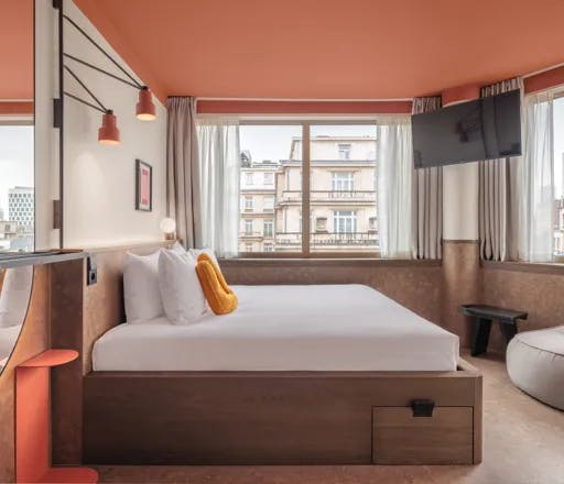 Our superior double room is smartly designed and just what you need for a solid night's sleep. It's all about getting you great value and keeping things green with our simple, low-carbon approach. Enjoy a queen-size bed, free Wi-Fi and blackout blinds for that perfect sleep. Room size 19sqm.
