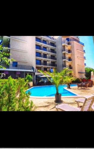Aparthotel Palazzo is a holiday complex with 2 swimming pools, bars and a restaurant, set in the popular Sunny Beach resort, a 5-minute walk from the seaside and the Cacao Beach club and party area. The spacious, air-conditioned apartments at the Palazzo are fitted with a balcony, a kitchenette, a TV with cable channels and a bathroom with bath tub and shower. The lively hotel offers a 24-hour bar with music, as well as a pool bar. A supermarket is located in the building and the restaurant on site serves international cuisine. The Aquapark Nesebar and the Action Aquapark Sunny Beach are 2 km from the hotel. The Old Town of Nesebar is 3 km away. A bus stop is located 150 metres away and Burgas Airport is reachable within a 30-minute drive.
