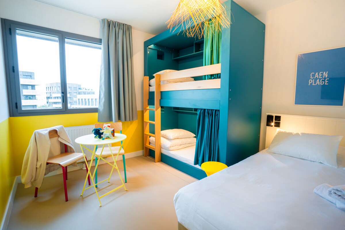 The studios of your 3-star Caen apartment-hotel are perfect for students or business travelers in spacious, bright and functional studios, as well as for families thanks to its 2 to 3 room apartments that can accommodate up to 6 people. Each accommodation is adapted to your needs and has a work area, a living room with a sofa bed in the apartments, and a fully equipped kitchen.