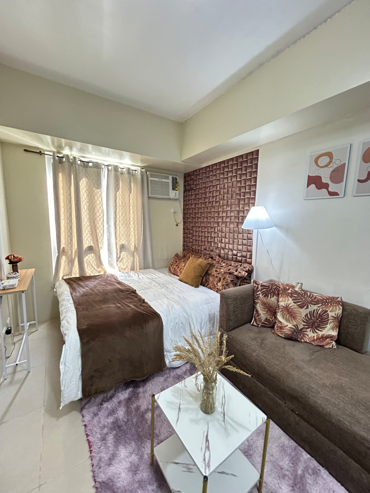 This stylish studio condo unit is located on the 21st floor of Sunvida Tower across the famous Sm Mall of Cebu. It’s within 5 min drive to Ayala Center and Cebu IT Park. Coffee shop, laundry, nail salon and a local restaurant is available on the ground floor of the building. Airport is within 20min drive and seaports is 5 min away. This is the perfect location in Cebu City whether you’re just visiting, on a business meeting or just wanted a staycation.