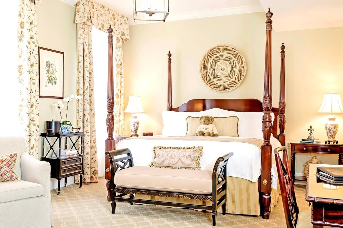Step into a cozy room situated in the heart of downtown Charleston. Our boutique hotel is ideally positioned for sightseeing, shopping, and dining, blending elegant Southern charm with contemporary sophistication. Your room is decorated with furniture indicative of the late nineteenth century style, featuring a comfortable bed and ample closet space. Rest assured, our accommodation provide a peaceful haven after your adventures on the vibrant streets outside.