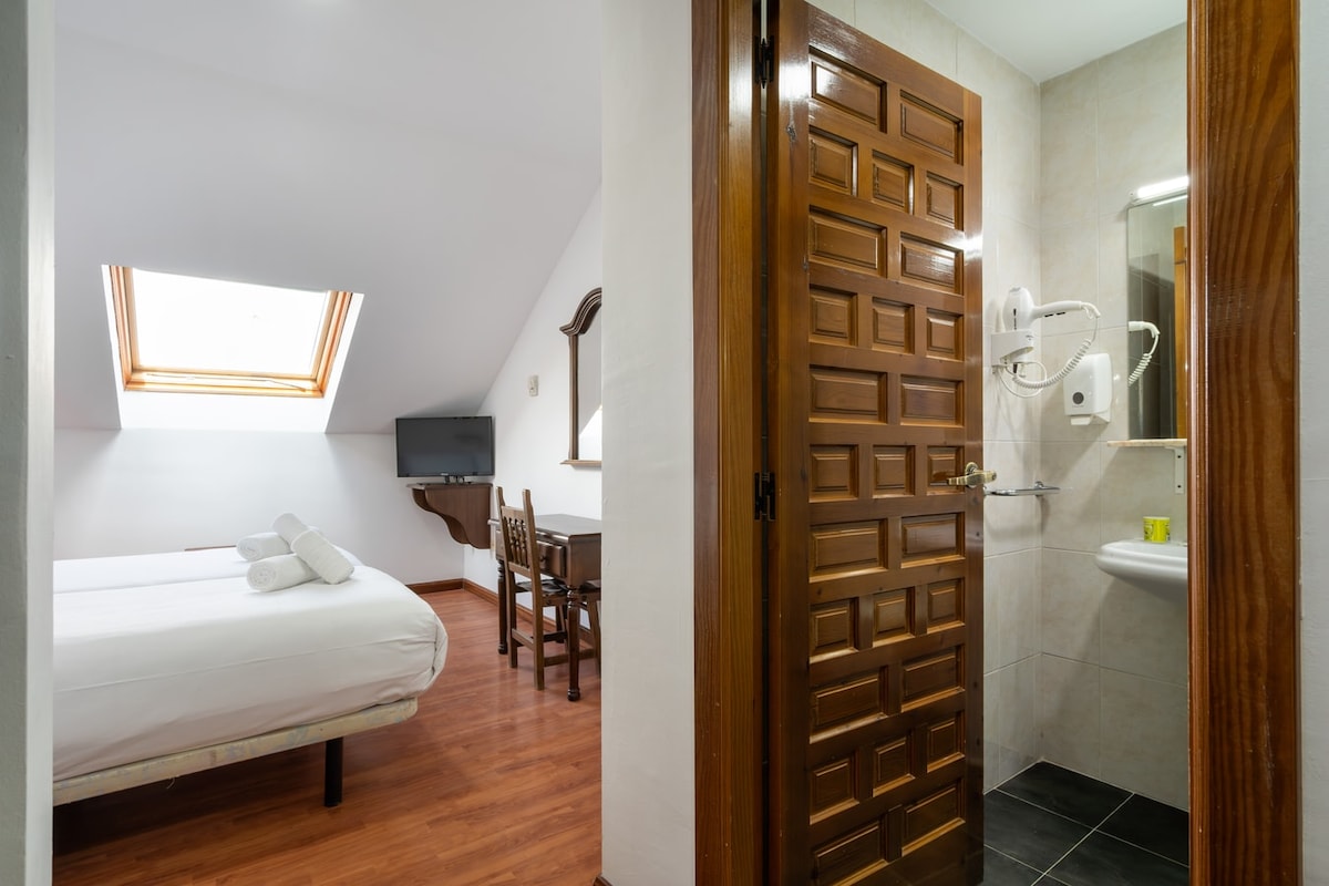 In your room, you will enjoy a comfortable double bed, a single bed, a wardrobe to store your luggage, sockets next to the bed, light switches on the headboard, and a window that faces the outside. In addition, you will have free TV and Wi-Fi. The bathroom includes:
