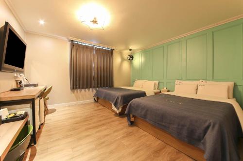 Hotel Myeongjak offers 36 air-conditioned accommodations with complimentary bottled water and coffee/tea makers. 50-inch Smart televisions come with digital channels and Netflix. Bathrooms include bathrobes, slippers, toilets with an electronic bidet, and complimentary toiletries.