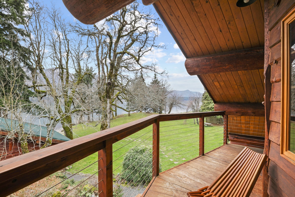 The Terrance features a king sized bed, a private bathroom, and two french doors that open onto the semi-private backyard terrace. It's open, bright, and comfortable. An ideal home base for your visit to Hood River.