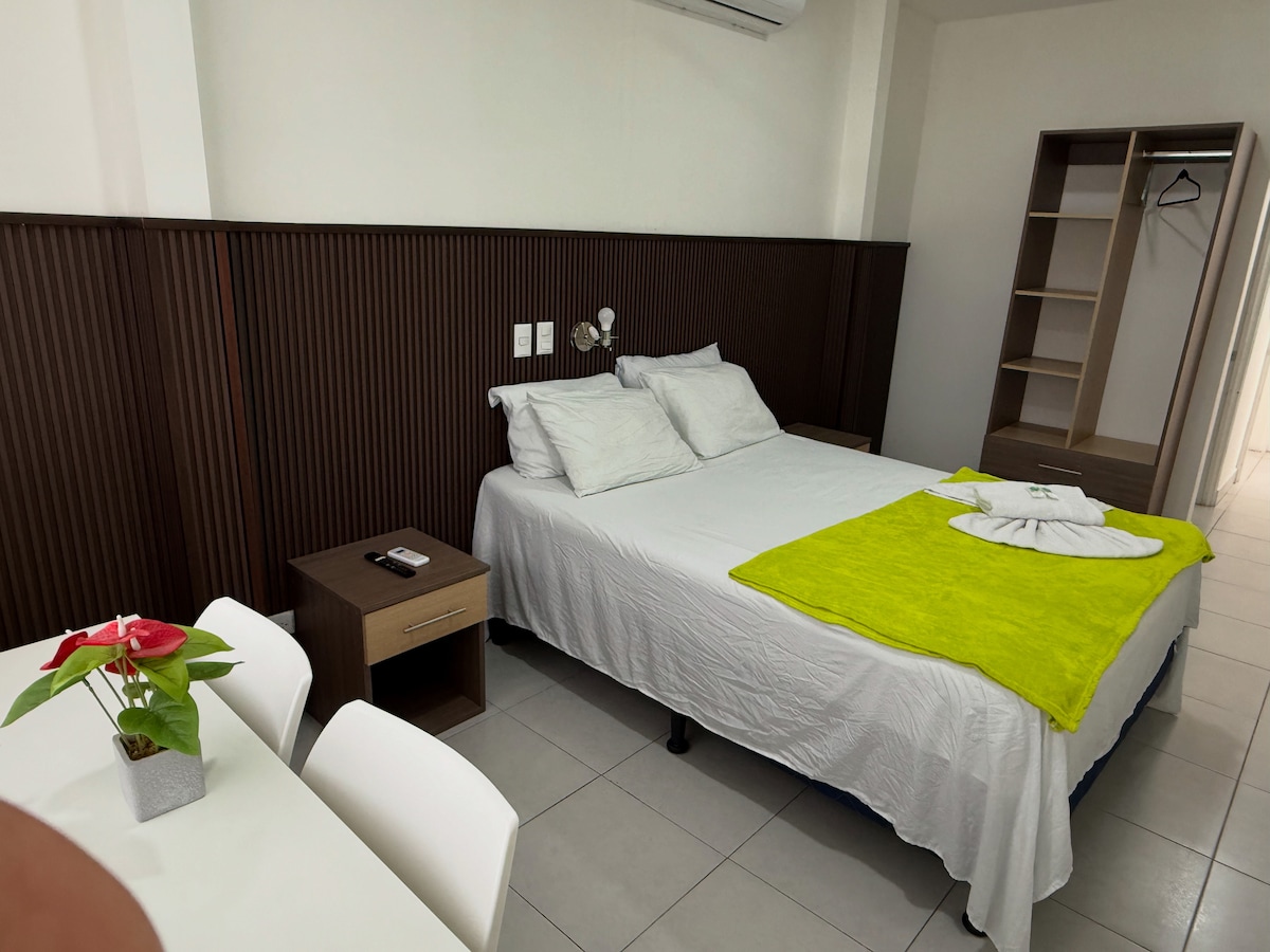 The hotel has a beautiful and quiet internal garden full of nature and fauna where each room has a separate entrance. This Standard room has a bathroom and hot shower, closet, fan, table, refrigerator, private parking included in the property. They are some of the amenities of Exotic Lodge.