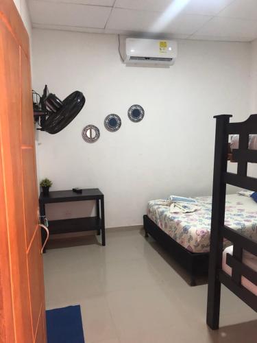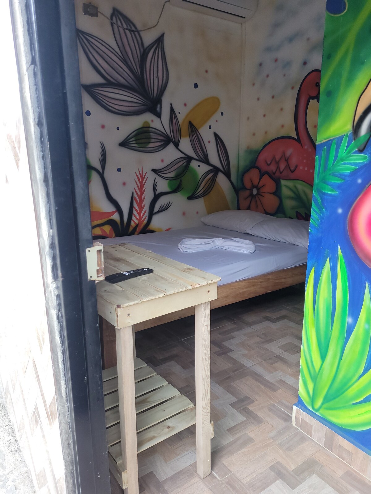 Private rooms for 1 or 4 people, includes a double bed, bunk bed, private bathroom, air conditioning, and TV. Just one block from the sea, in front of the Arrecifes Coveñas building. Yes, it's in Coveñas (first cove). Close to the sea and everything you need for a good rest, we have restaurant service ☀️