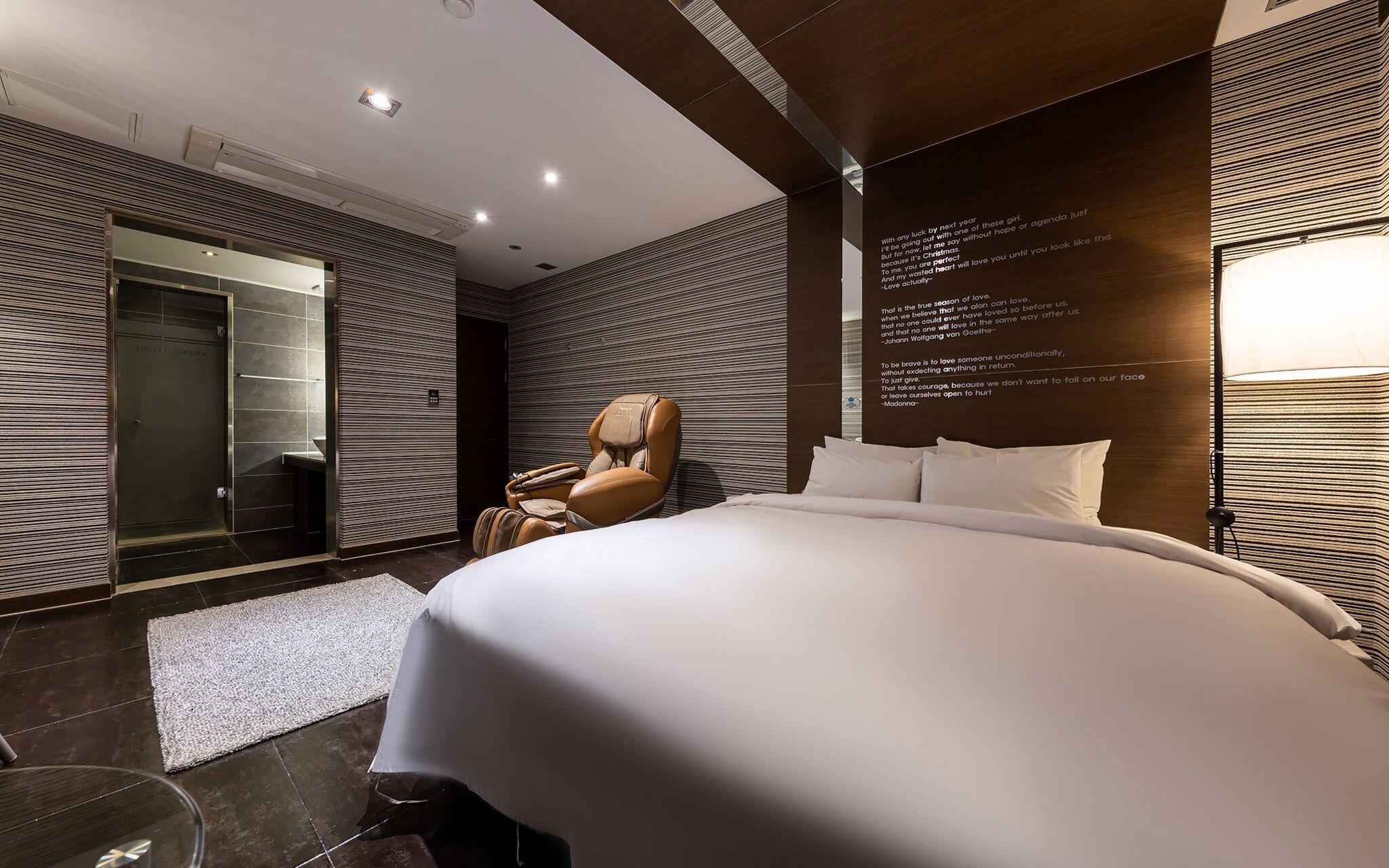 The bathroom, which has been completely modeled, provides toothpaste, shampoo, treatment, and body wash.