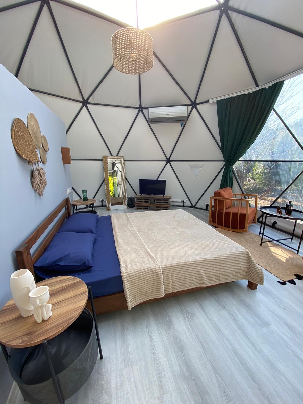We have 4 tents in our facility, each prepared with a special concept. Inside our tents, there is a bathroom and a kitchen outside the living area. There is a service set for 3 in the kitchen.. There is a barbecue in the garden of our detached domes. There is an area with a fire pit concept where you can spend time in the seafront location. Bed and breakfast included. It is free to bring food and drink from the outside. You can benefit from nearby contracted restaurants and cafes as a food
