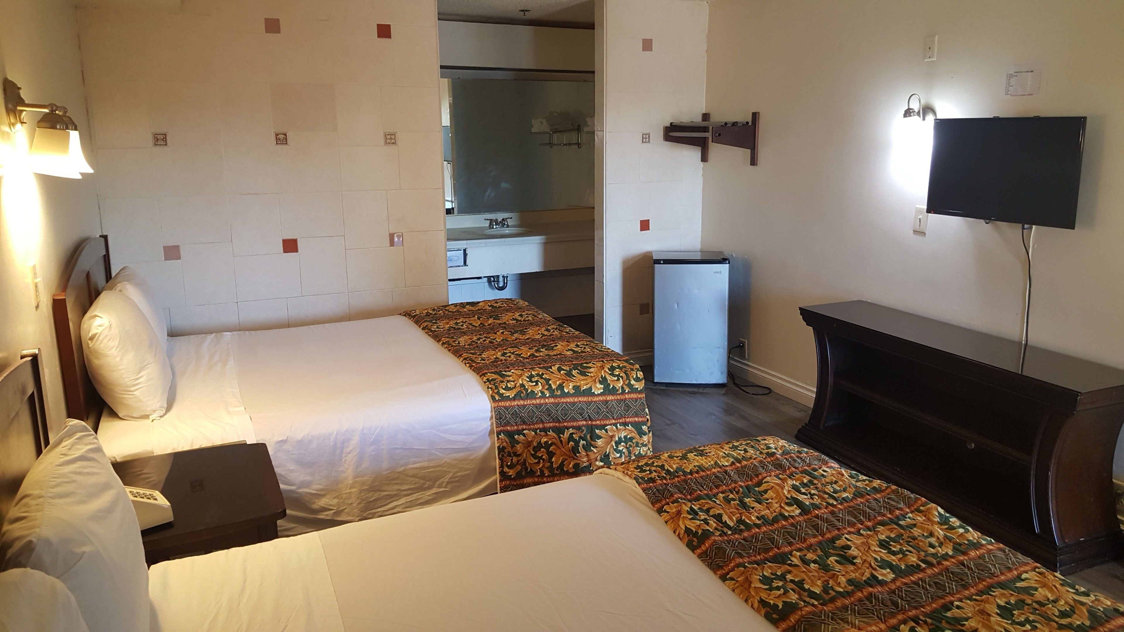 This motel located in Downey, California offers free Wi-Fi. The hotel is minutes from Interstate 105 and the Los Amigos Country Golf Course. Every room at the American Inn Downey offers cable TV, a compact refrigerator and a microwave. A dining area is included in each room as well. Downey American Inn is located near Disneyland. Knott’s Berry Farm Amusement Park and Universal Studios are within driving distance of the motel.