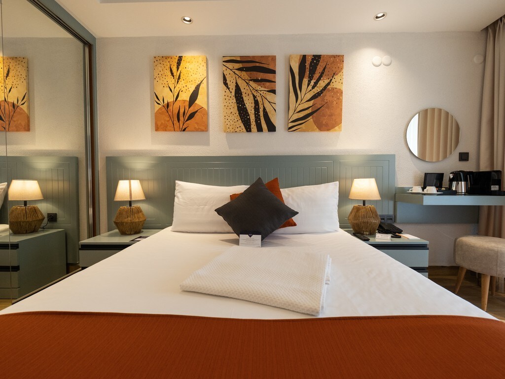 Parmos Otel offers 56 air-conditioned accommodations with minibars and espresso makers. Rooms open to balconies or patios. Each accommodation is individually decorated. A pillow menu is available. 43-inch Smart televisions come with satellite channels. Bathrooms include showers, slippers, complimentary toiletries, and hair dryers.