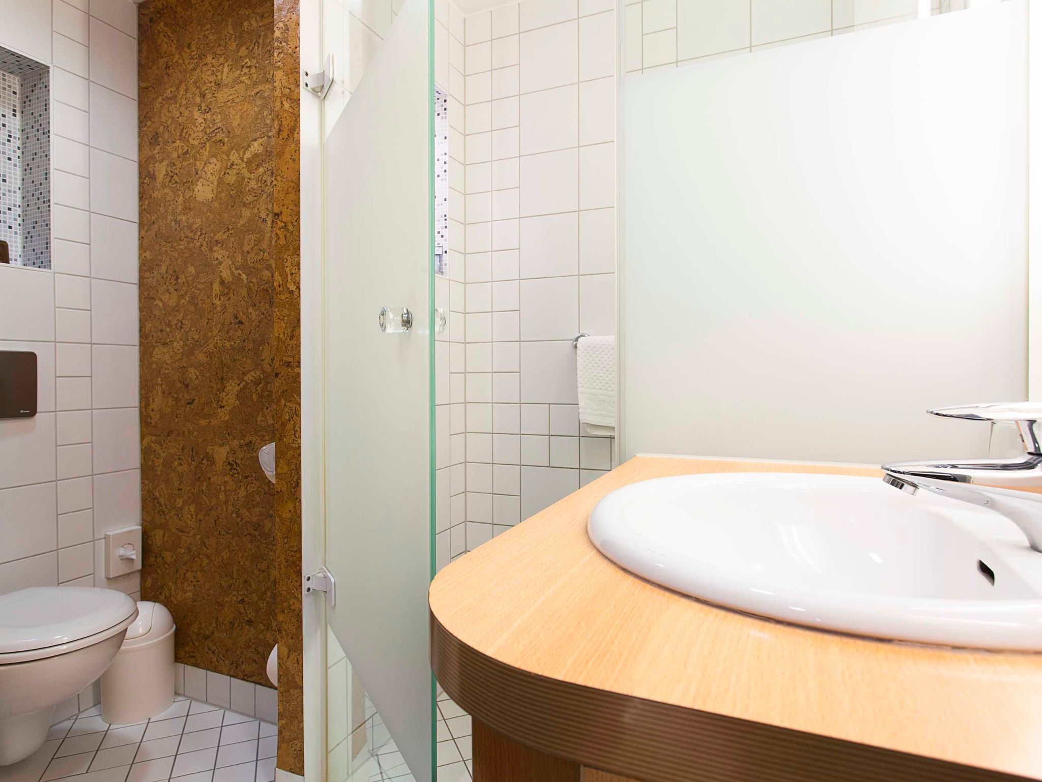 The approx. 20m ² standard rooms are equipped with twin beds (2x90x200), desk, telephone smoke detector & sprinkler system, tea and coffee making facilities, flat screen TV & radio, high-speed internet access up to 100 Mbit / s *, modern, open bathroom area with shower, hair dryer, hygiene articles.