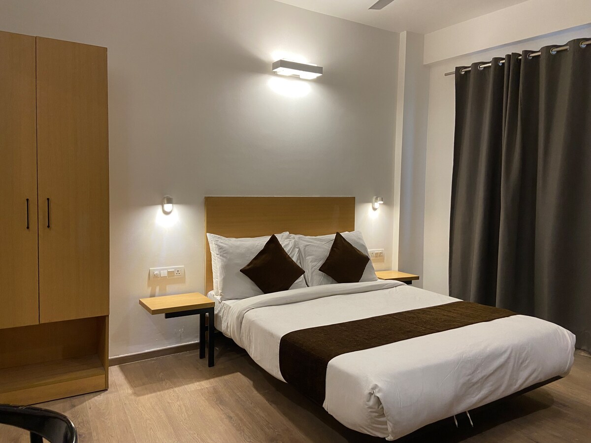 Private Serviced Apartment located inside sarovar portico, Located next to the Famous Taj Resort And Spa Hotel .