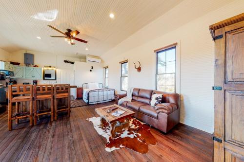 Rustic rooms with a deck and beautiful view! Built in an original Dance Hall on site of historic Texas town, population 0. Your deck is steps away from the milk barn and hen house. Not the Ritz Carlton! Get ready for farm life! Smells. Sounds. Sites. You are only feet from farm yard. Saloon open Wed-Sun. Lawn games. Four walls and a comfy bed. Shared bathroom and showers. Only 8 miles from downtown Fredericksburg. Food, bar, live music Wed-Sun. Wineries close. Get away!
