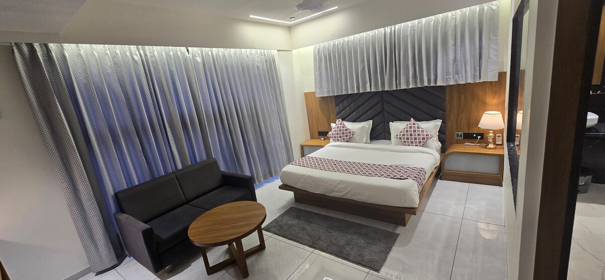 Hotel is located on KUDASAN POR road, behind UGATI HEIGHTS in the vicinity of INFOCITY and IT PARK. It features 49 Executive Suites well-furnished to suite your taste & comfort. Located at a short distance from Ahmadabad Airport, the Hotel is in the proximity of GIFT City, IT Park, TCS and major educational Institutions like NID. NIFT, IIT, IHM, PDPU, DAI CT, GNLU. Gujarat Sachivalaya, famous Akshardham Temple and Mahatma Mandir Convention Centre are at a close distance from the Hotel.