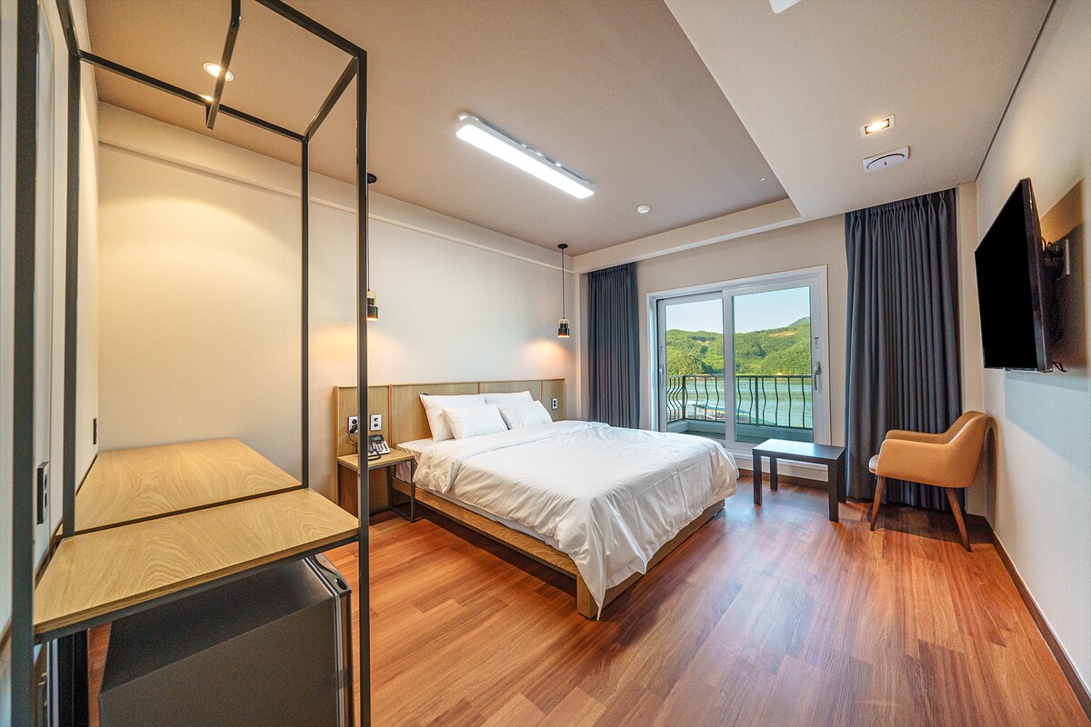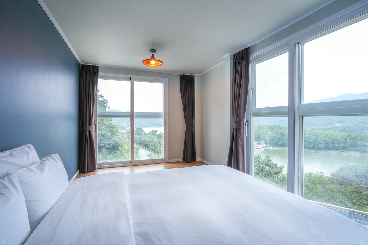 01. Cheongjeong Lake spreads beyond the window of the room! River view from all rooms