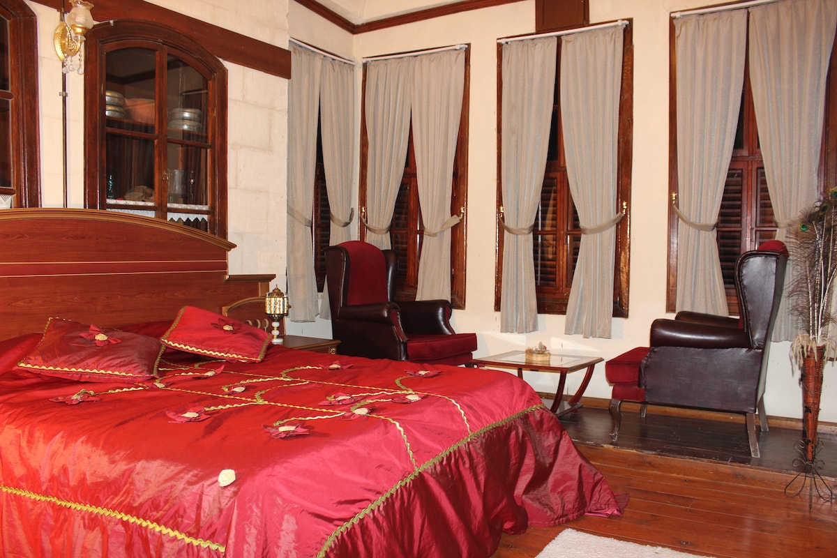 We have named this room 'Sedef', which reflects the design of only the pearl craftsmanship unique to Gaziantep,this room is equipped with accessories consisting of mostly sedeft, there is one double and one single bed in the room, it has a large bathroom, we will do everything we can to make you have a peaceful time here