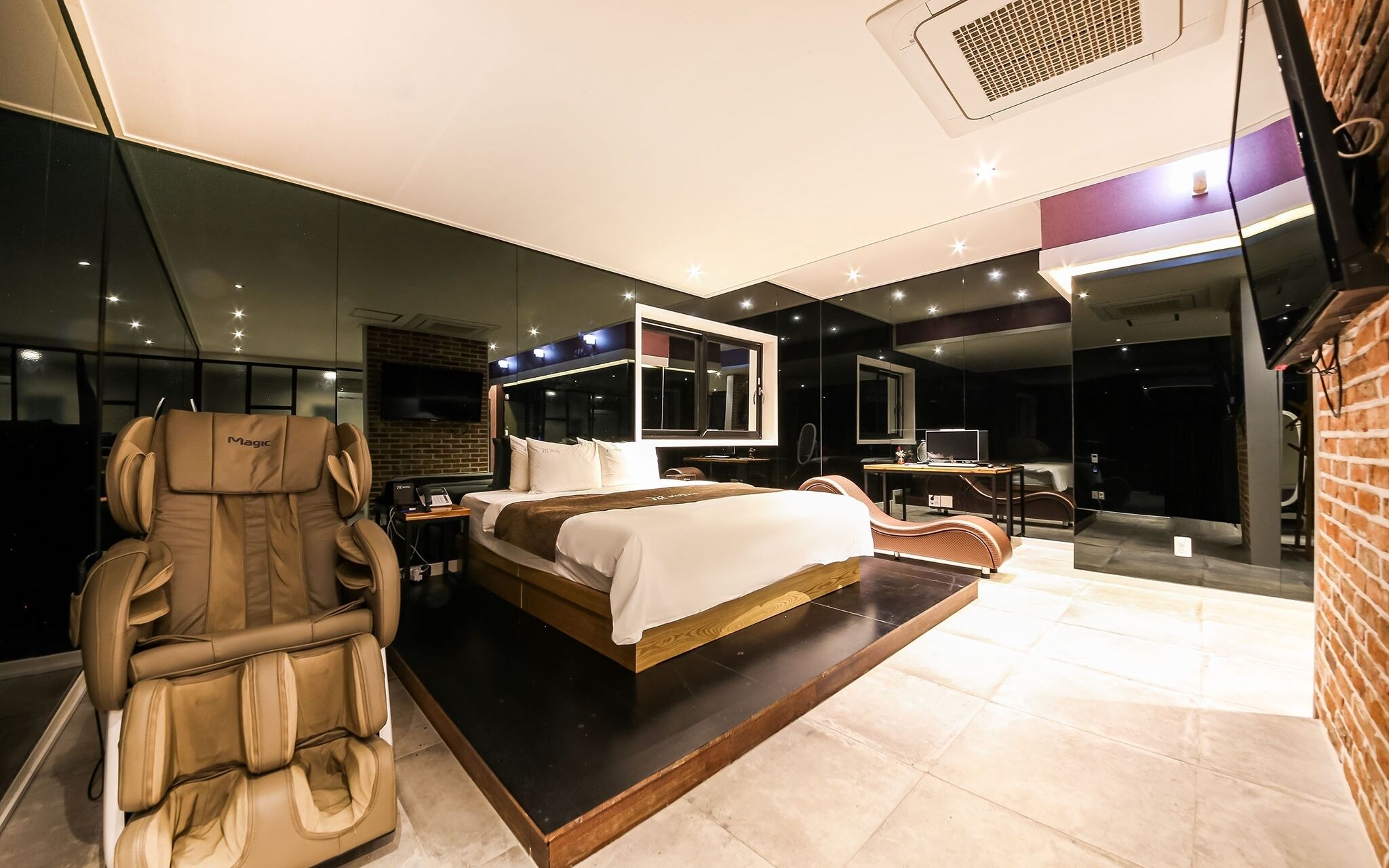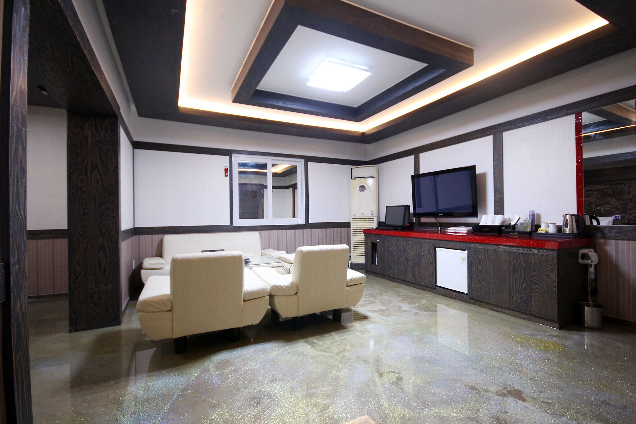 Brown Dot Hotel Buan Byeonsan offers 40 air-conditioned accommodations with bathrobes and slippers. Accommodations offer separate sitting areas and include dining tables. Memory foam beds feature down comforters and premium bedding. 5575-inch Smart televisions come with digital channels. Bathrooms include separate bathtubs and showers with deep soaking bathtubs, designer toiletries, bidets, and hair dryers.