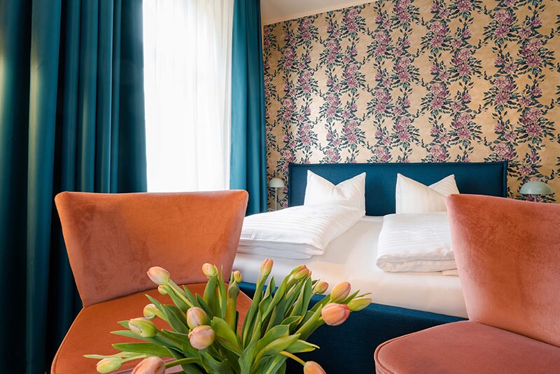 Overlooking the small grove and the high-grown rhododendron bushes in front of our house, the double room offers spacious space on 24.5 square meters. The modern fittings and homely country-style furnishings are designed for overnight stays of two guests. If necessary, an extra bed is possible for another person. Depending on availability, it can also be booked as a single room.