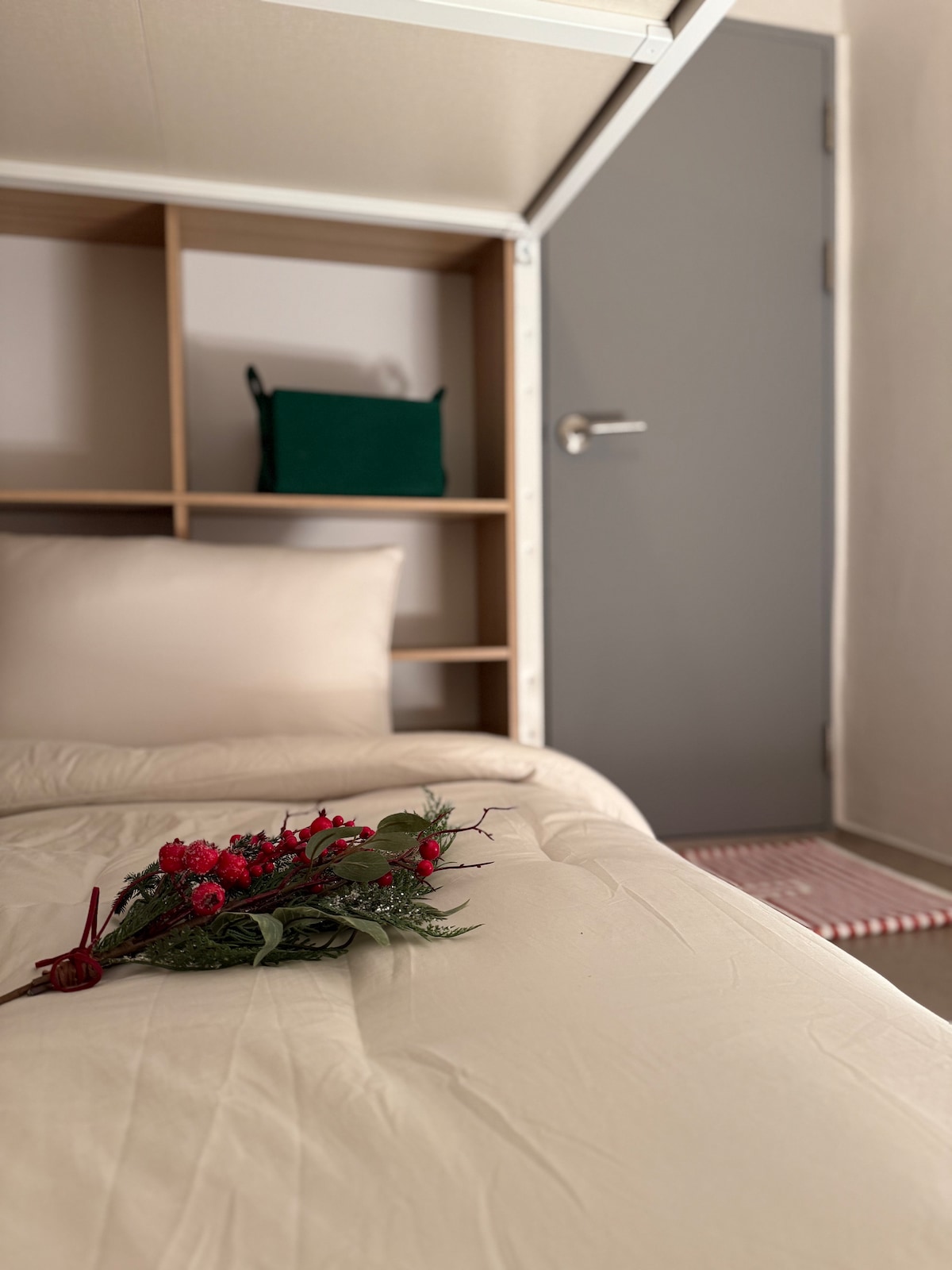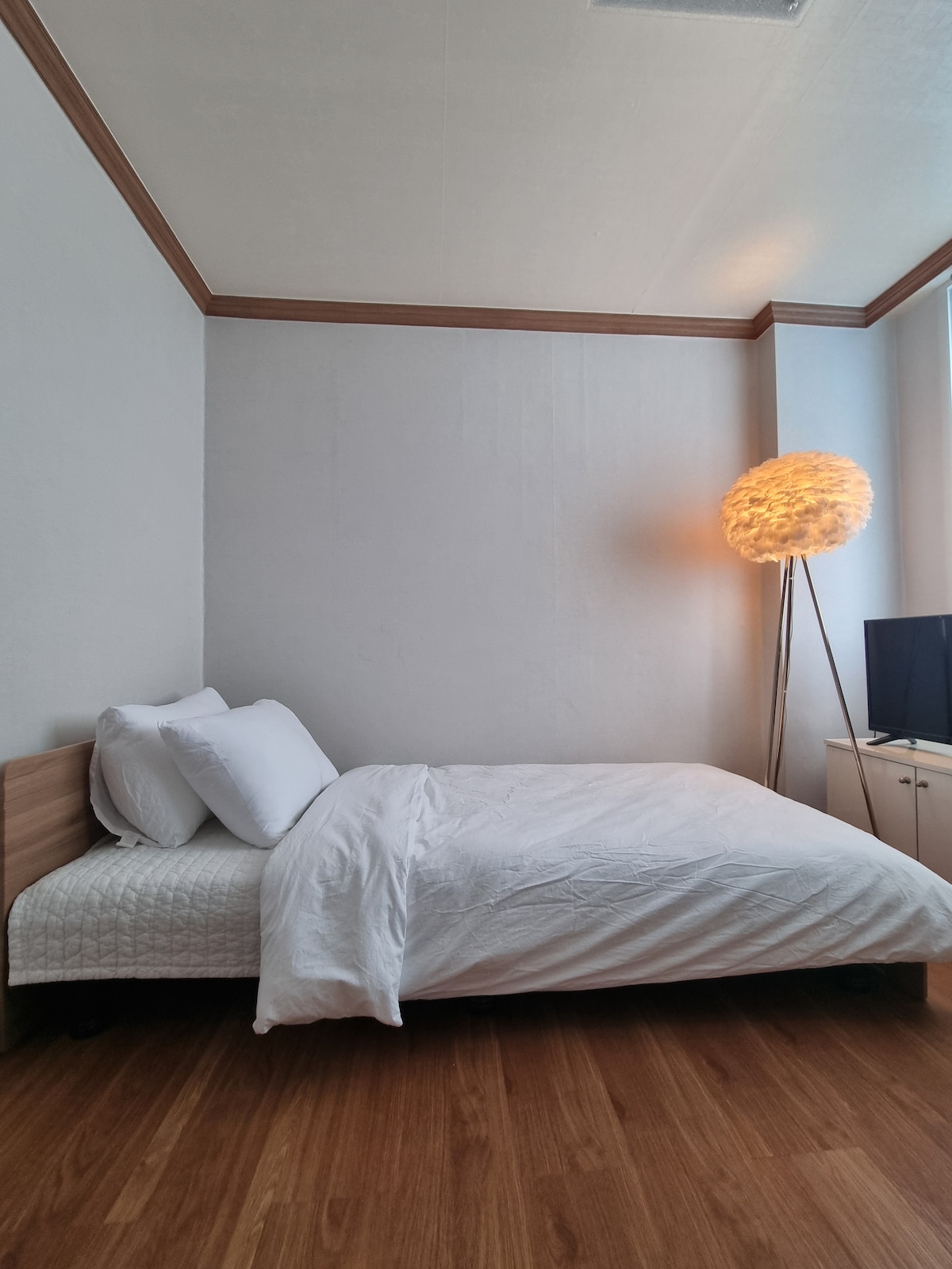 Eden205 is a cozy space for a single guest to stay, with a single bed and clean bedding managed by the host.