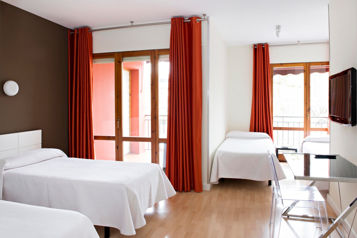 They can be 1 or 2 beds. Some of them with balcony, and all with desk, flat TV, air conditioning, private bathroom and Wi-Fi.