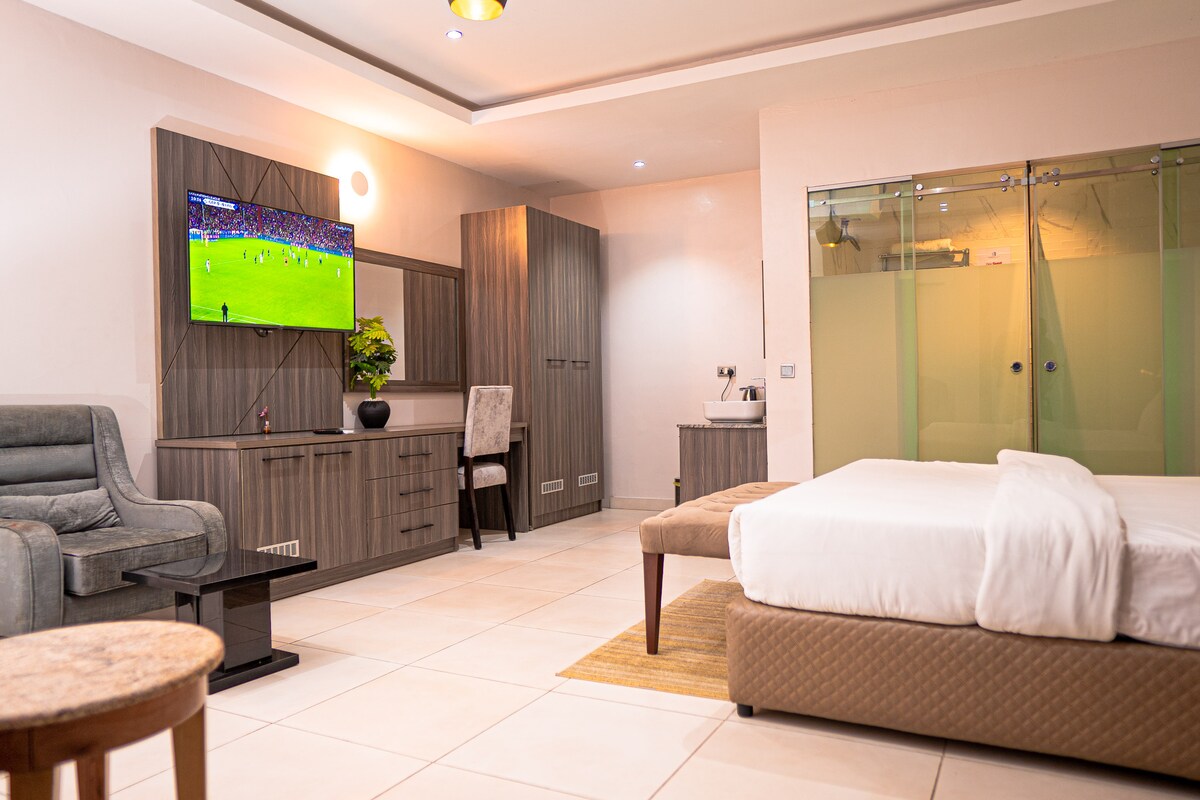 Welcome to the Classic Room at De-manchy Hotels and Suites, where contemporary elegance meets exceptional comfort. Step into a haven of modern luxury and indulge in a truly memorable stay.