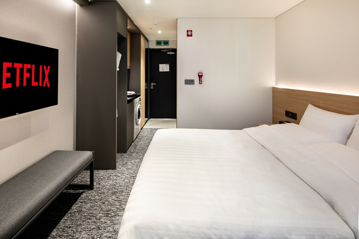 Renewed in 2024, completely non-smoking hotel, 65/75 inch smart TV, all OTT free, large king bed, free valet parking, all breakfast, snacks, drinks, free bottled water, 1 minute walk from Icheon Terminal, 3 minutes from downtown