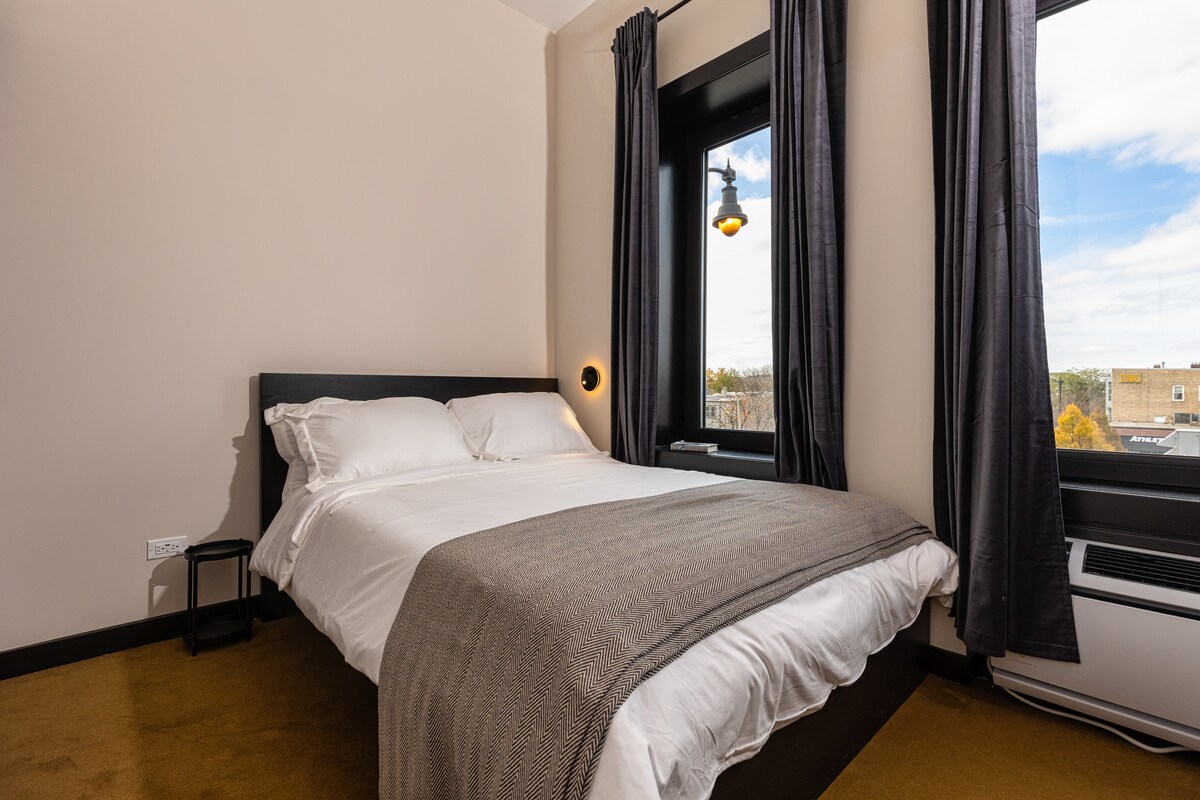 Fully furnished private room in Logan Square! This petite room (note, it's small!) is brand new with a shared bath with one other room across the hall. The bedroom includes a full size bed, sink, mini-fridge, microwave, smart TV, under-bed storage, and work station. WIFI included and heat & AC controlled by you. Common lobby with seating. Washer/Dryer on site. This location is only minutes to cafes, bars and restaurants, as well as the Blue Line Train from O'Hare Airport to Downtown.
