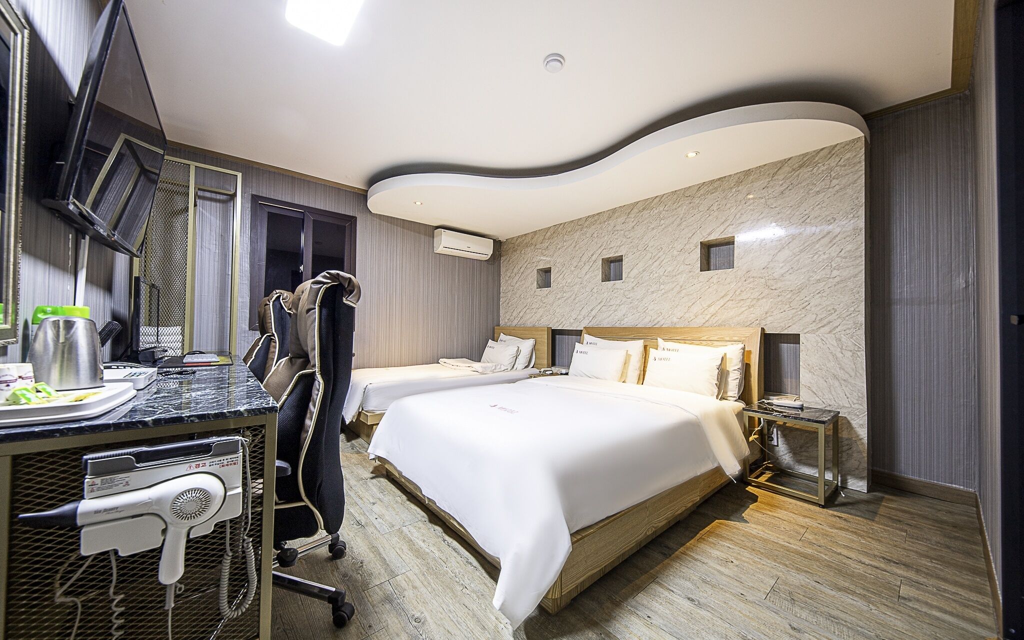 Jeonju Hotel Twosome Stay Seosin offers 39 accommodations with complimentary bottled water and hair dryers. Memory foam beds feature premium bedding. A pillow menu is available. 75-inch Smart televisions come with digital channels and Netflix. This Jeonju hotel provides complimentary wireless Internet access. Hypo-allergenic bedding, change of towels, and change of bedsheets can be requested. Housekeeping is provided on request.