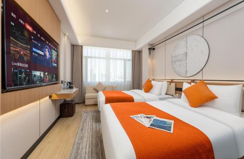Located in Jiuquan, 12 miles from Jiayuguan Fantawild Adventure, Jiuquan Smart Hotel has accommodations with a terrace, free private parking and a restaurant. Among the facilities at this property are room service and a 24-hour front desk, along with free WiFi throughout the property. The property provides a concierge service, a tour desk and luggage storage for guests. The rooms in the hotel are equipped with an electric tea pot. Rooms have a private bathroom with a shower, free toiletries and a hairdryer. At Jiuquan Smart Hotel all rooms come with air conditioning and a flat-screen TV. A buffet, Asian or vegetarian breakfast is served at the property. Jiayuguan Airport is 16 miles from the property.