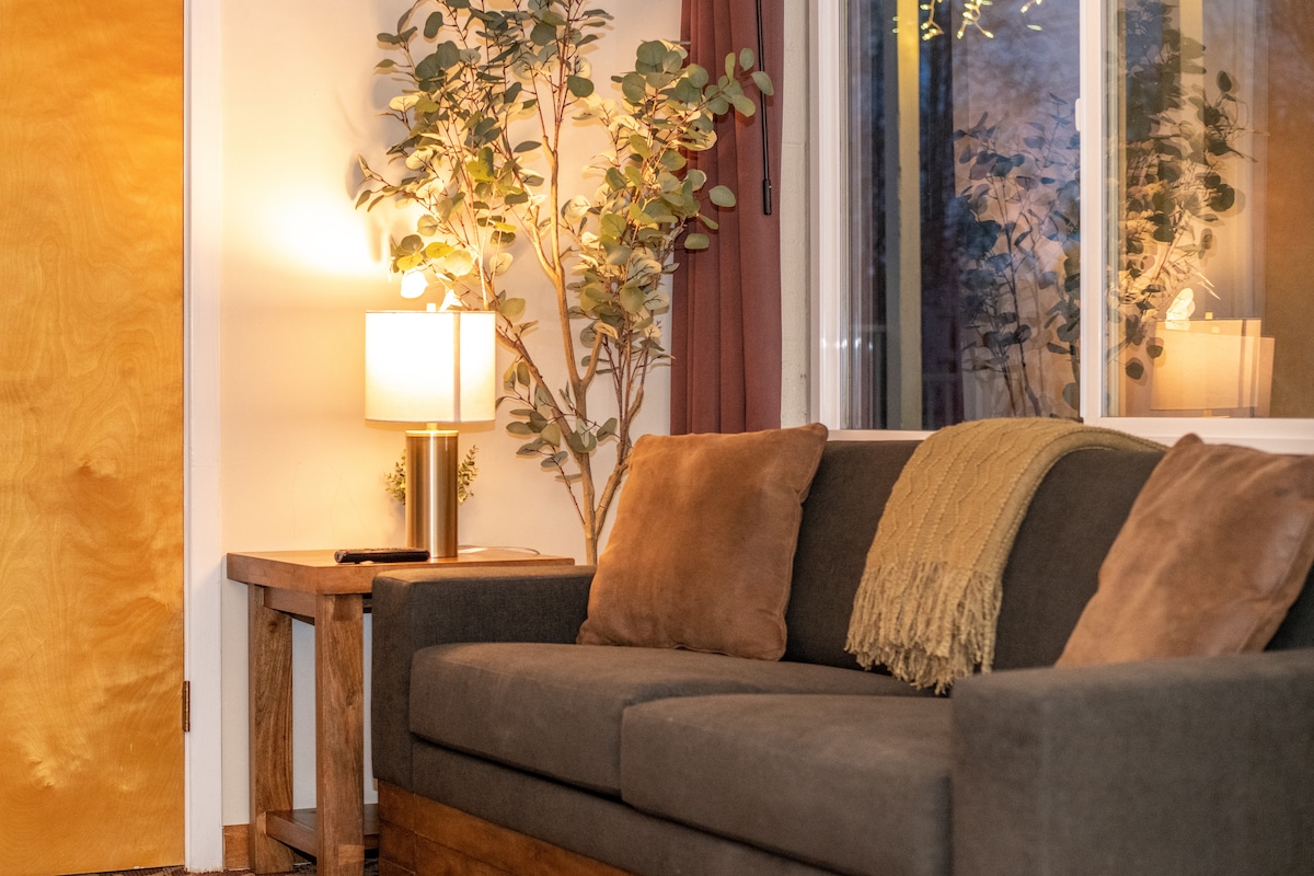 We love traveling with our doggos, but unfortunately, this suite isn’t pet-friendly (we try to avoid the sound of tippy-tapping paws for your downstairs neighbors). However, pets ARE welcome in suites #1-7, as well as our cabin (#16), and we’re happy to accommodate you and your furry friend there.