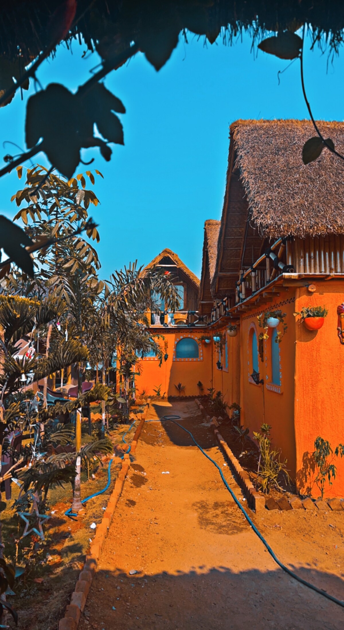 River view bamboo cottages located near Anjinadrihill, Sanapur Lake, Hippie Island.