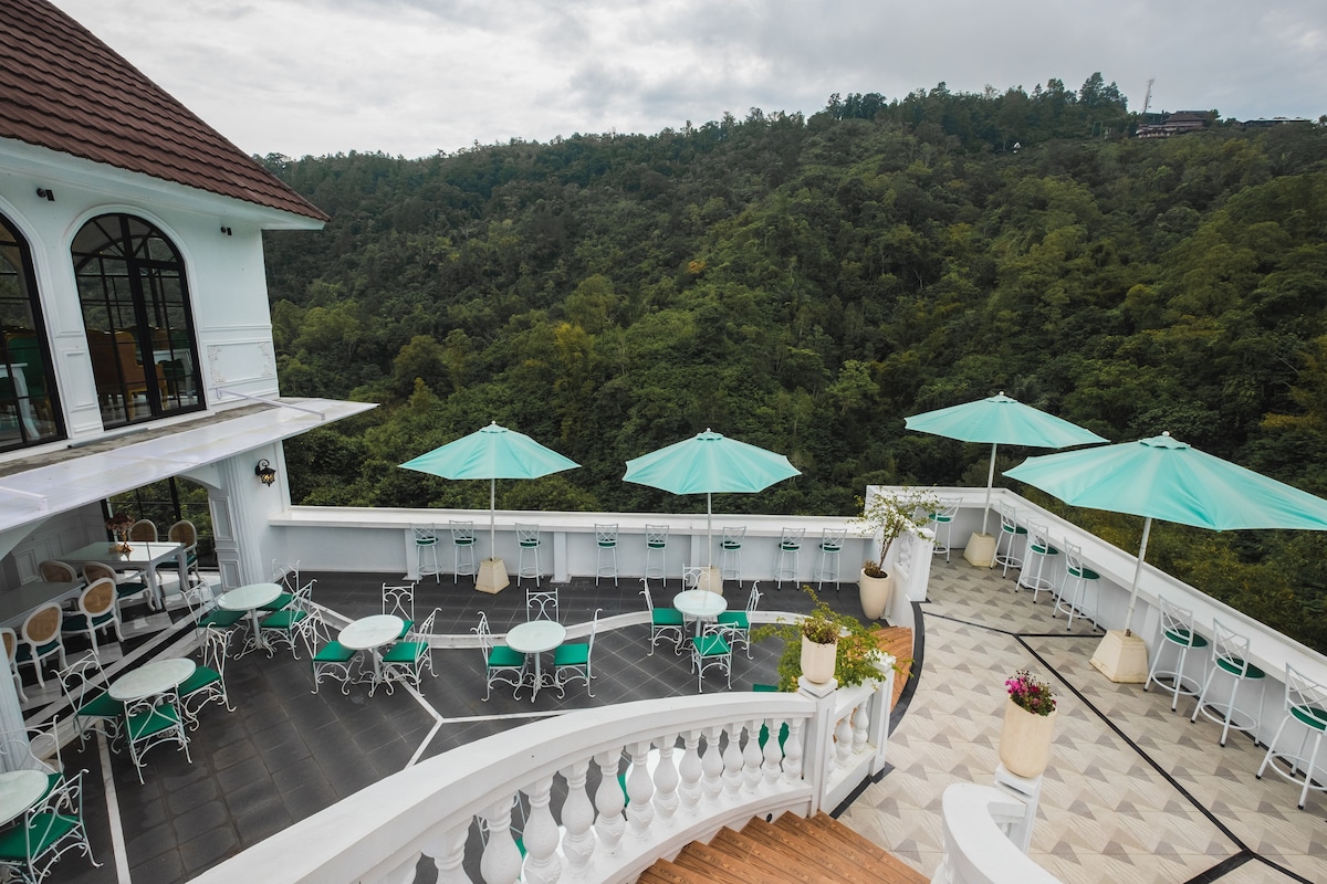 Our bathup set up in the balcony so you can enjoy the view soaking with hot water.