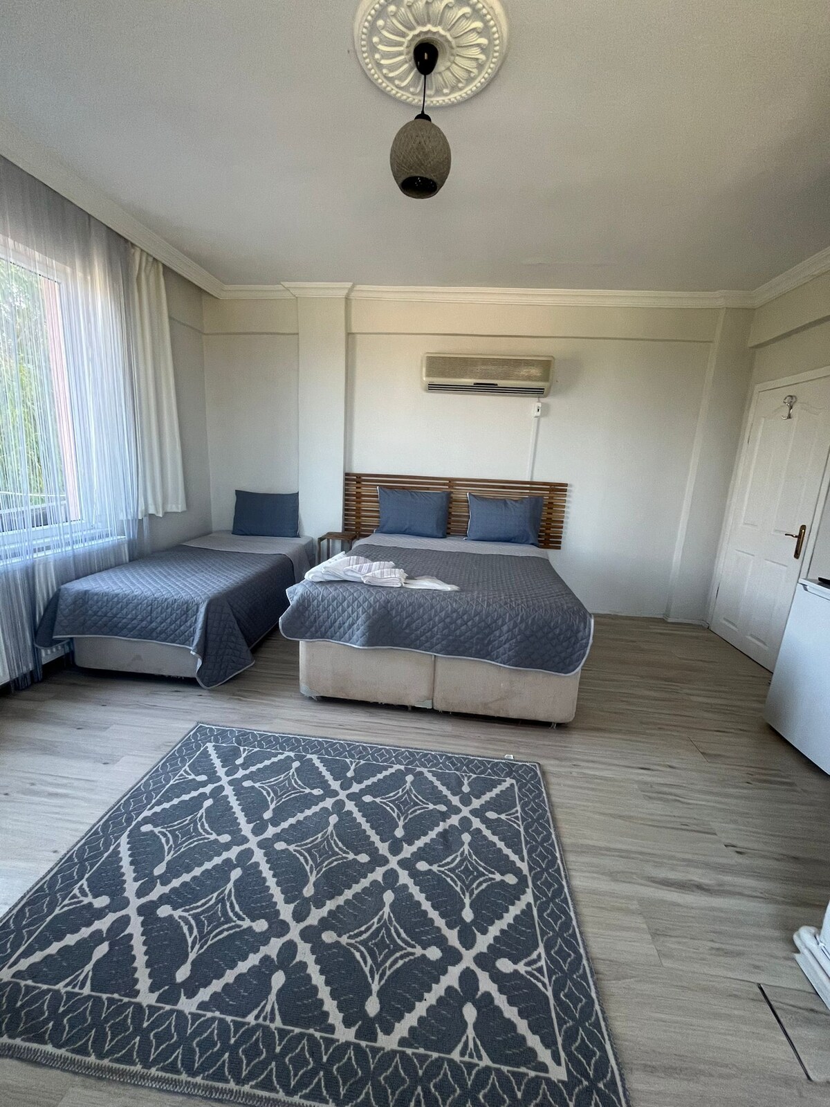 - "Hotel's room was clean and big enough for 2 people. The given equipment was okay. The breakfast bufet was good and plentiful. The only annoying thing was that the bathroom floor was always wet because of a leak somewhere. In General, it is the right choice to spend your night there if you are only looking for enjoying outside. It is located near the beach. Oda temizdi. Odanın büyüklüğü yeterliydi. Ferahlık sağlıyor. Açık büfe kahvaltıda çeşit çoktu ve lezzetliydi. Sahile yakın. İlgilenenler yardımsever ve ilgiliydi. Tavsiye ederim. "