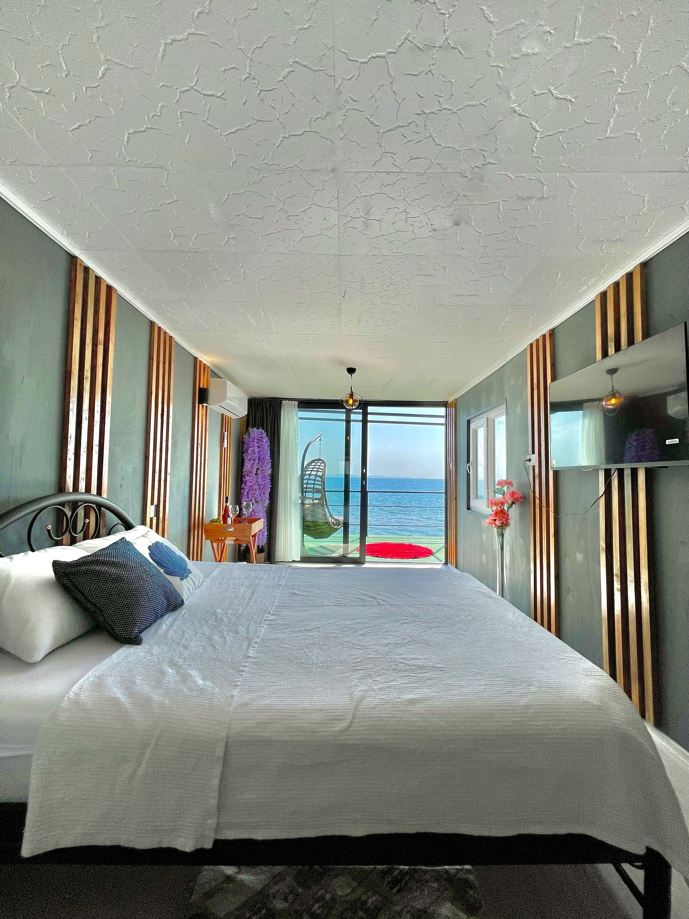 VIP Room (Without breakfast) - Beachfront Private Bedroom- Breakfast fee 2 people 500 TL- Television, Air conditioning, Mini bar- Essentials- Maintenance Set- Hair Dryer- Free Parking- Outdoor dining area - Room on the pier - Private sun lounger on the pier - Balcony with sea and geese views - Dining area on the balcony- Cool on the balcony - Spacious- Spacious- Seating- Garderob - Free WİFİ- Private day Celebration Organizations- No smoking- Private bathroom and toilet to the room - Spacious Balcony