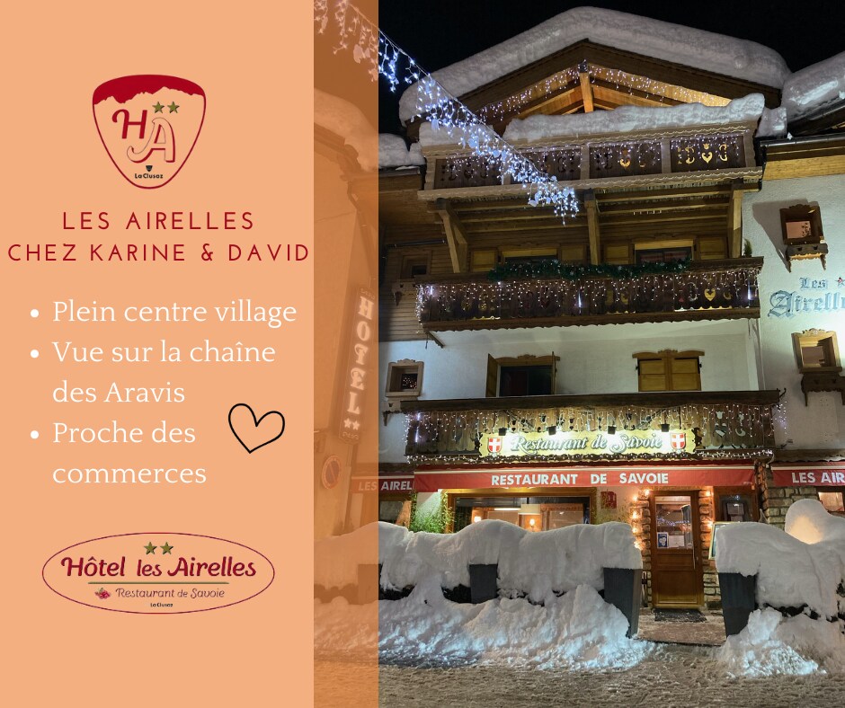 This accommodation at L’Hôtel Les Airelles ** is located in the center of the village of La Clusaz with its shops and entertainment.