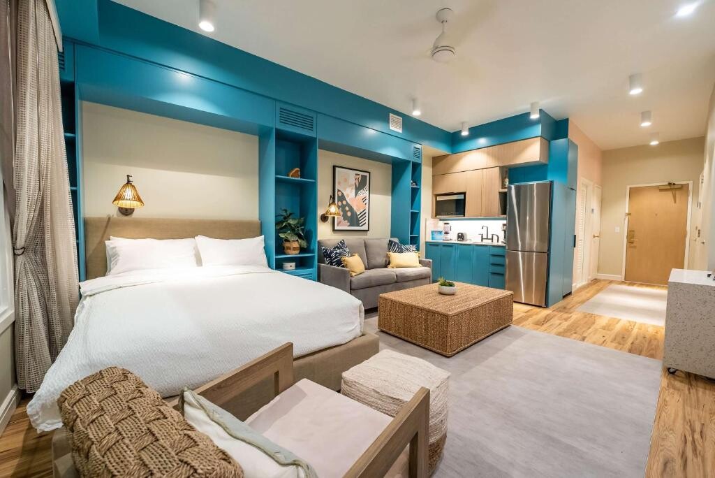 This 300sf QUEEN BED 1 ROOM STUDIO SUITE features: