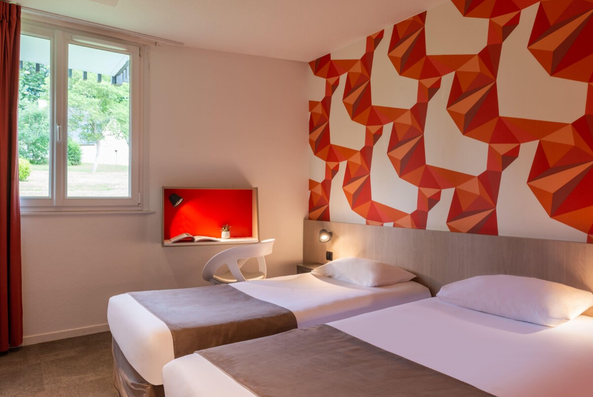 Very bright and well-designed, the Ara Hôtel’s 40 rooms pay tribute to the mascot bird showcasing yellow, green, blue or red in graphic wall decorations. Each room comes with a desk, Wi-Fi and various plug sockets. The rooms at the Ara Hôtel cater to every need with twin, double, family and disabled access options.