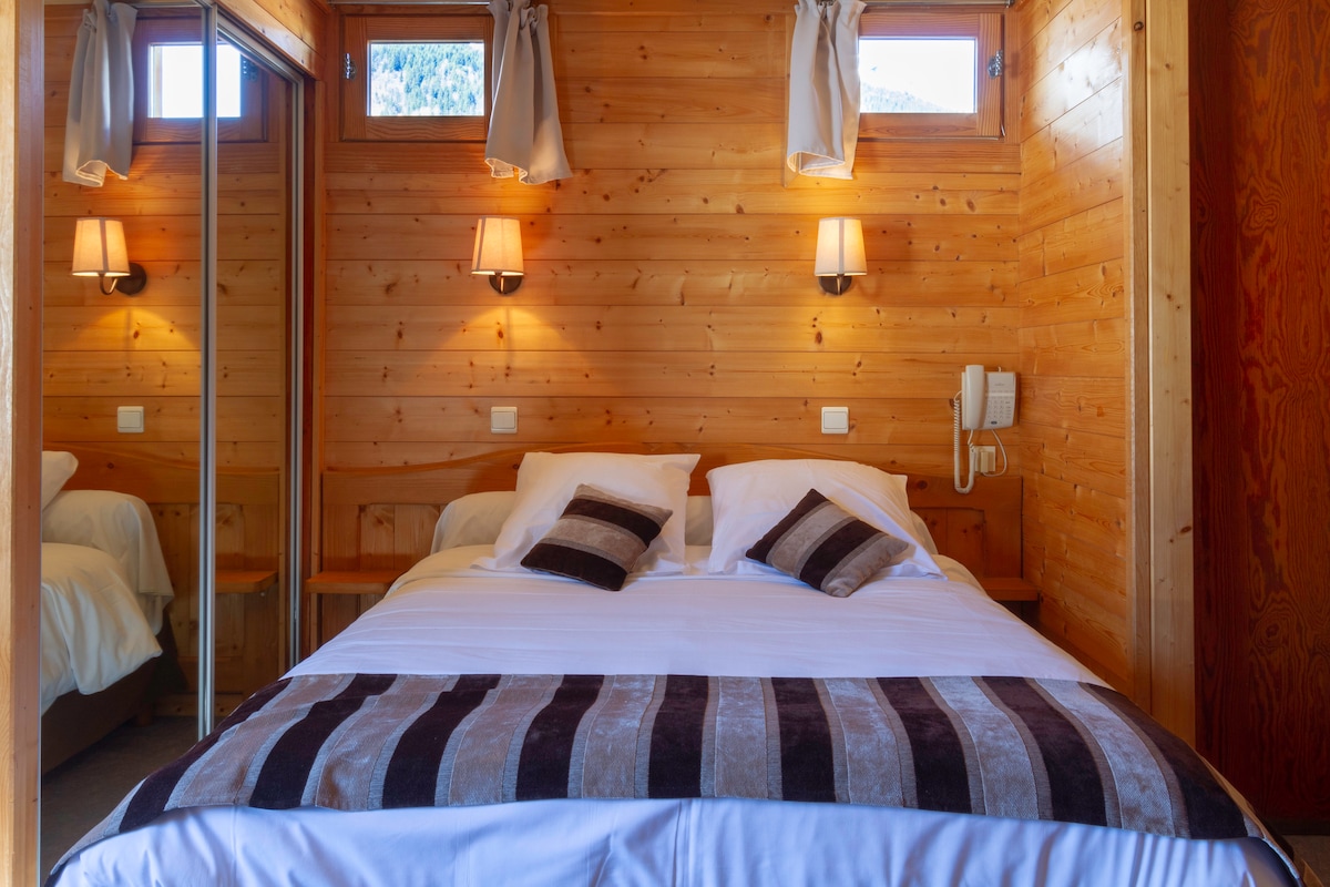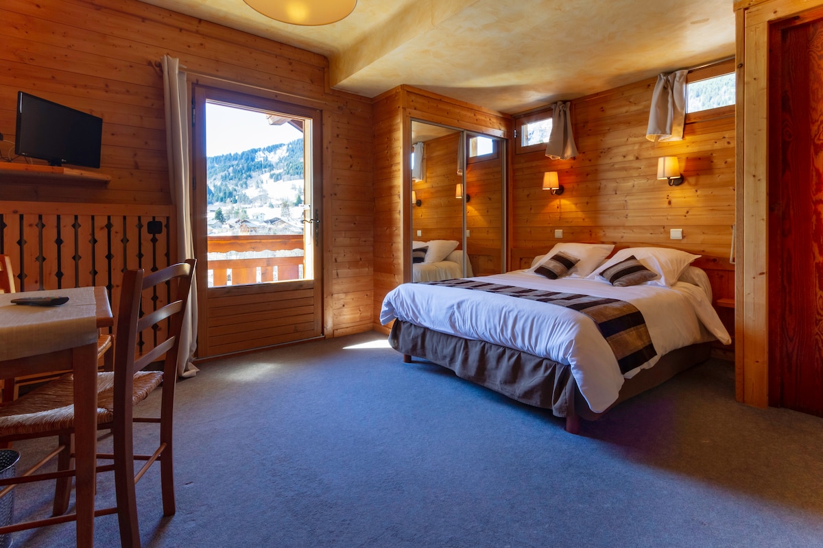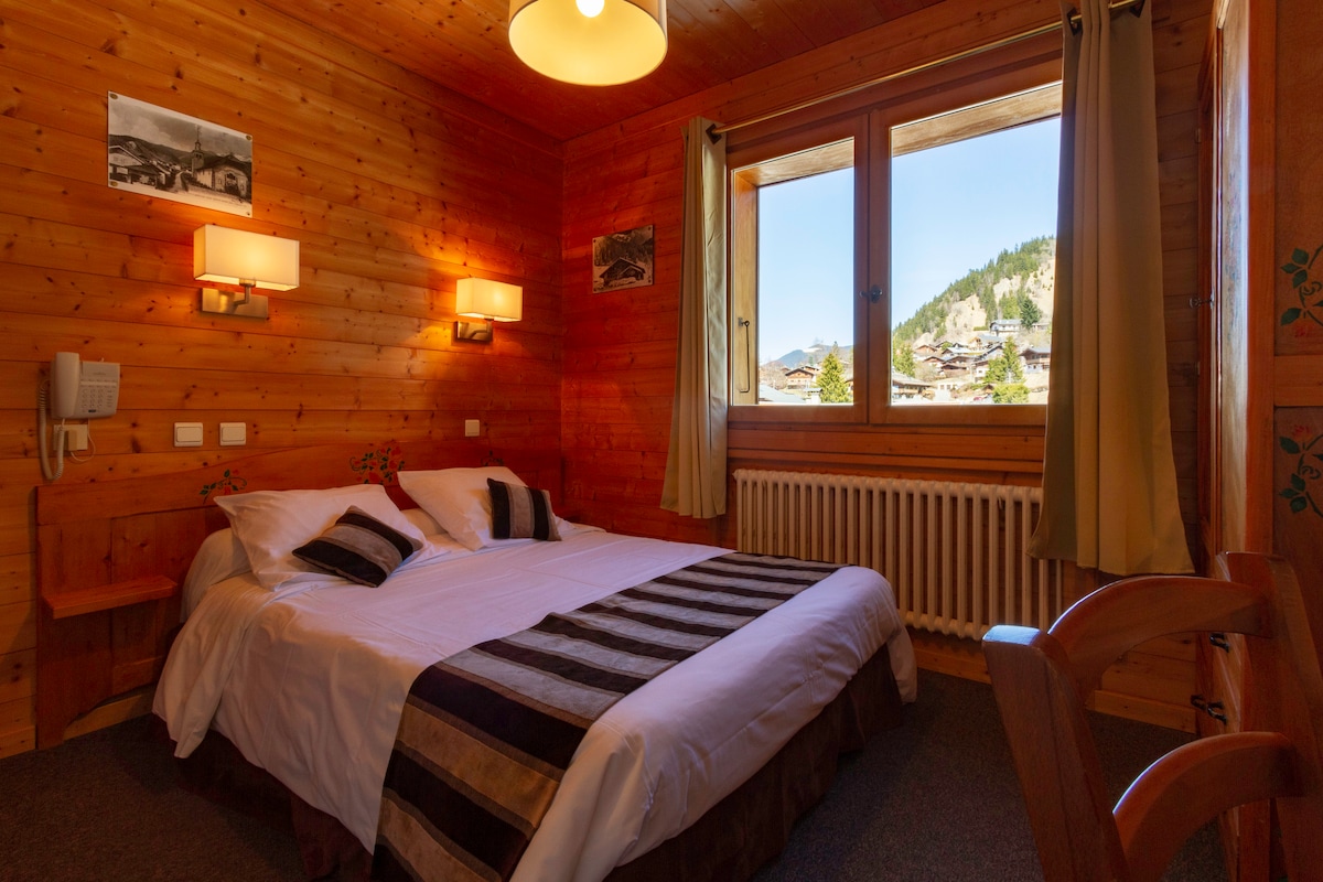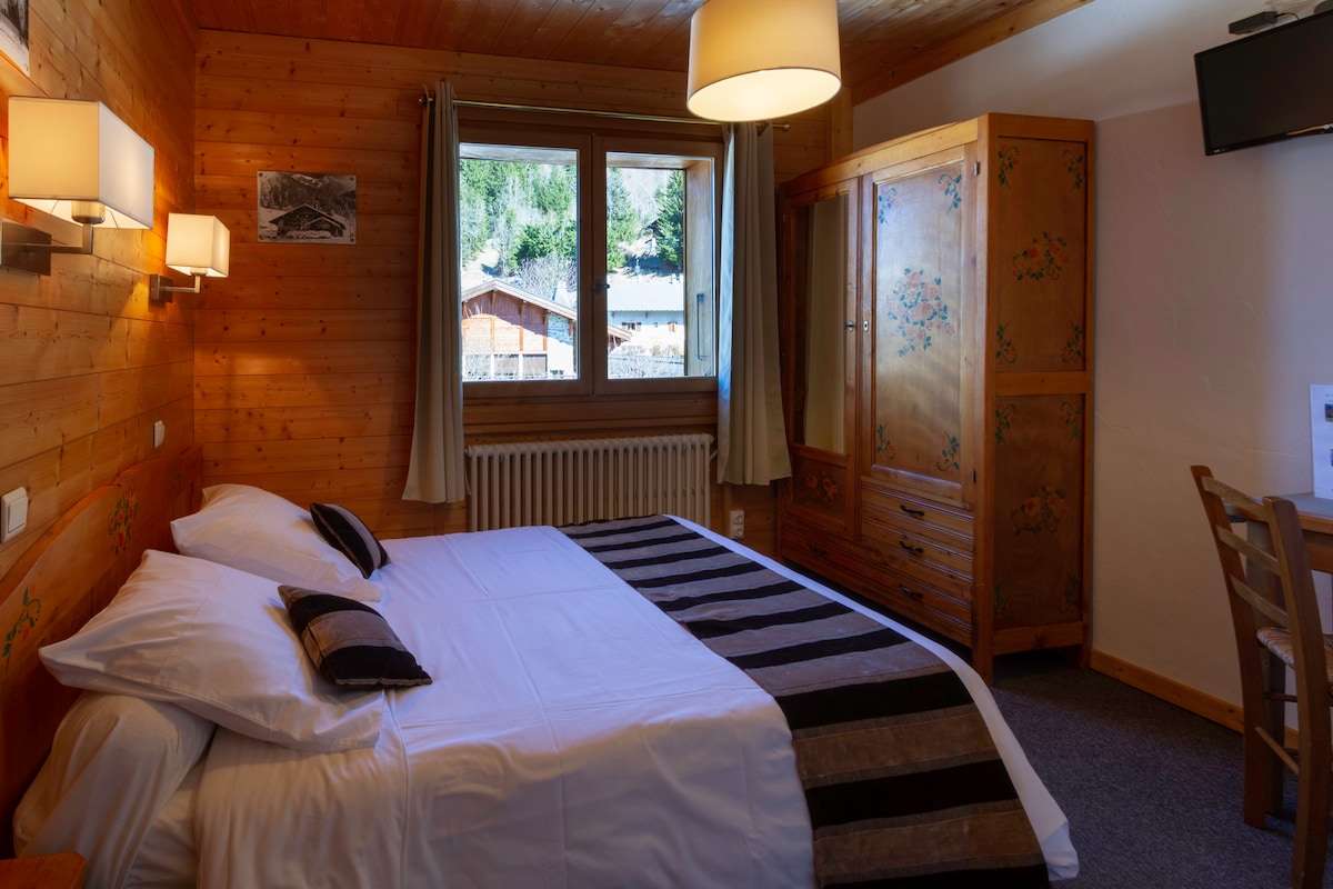This room with a cozy double bed has a beautiful view of the village of Les Contamines Montjoie.