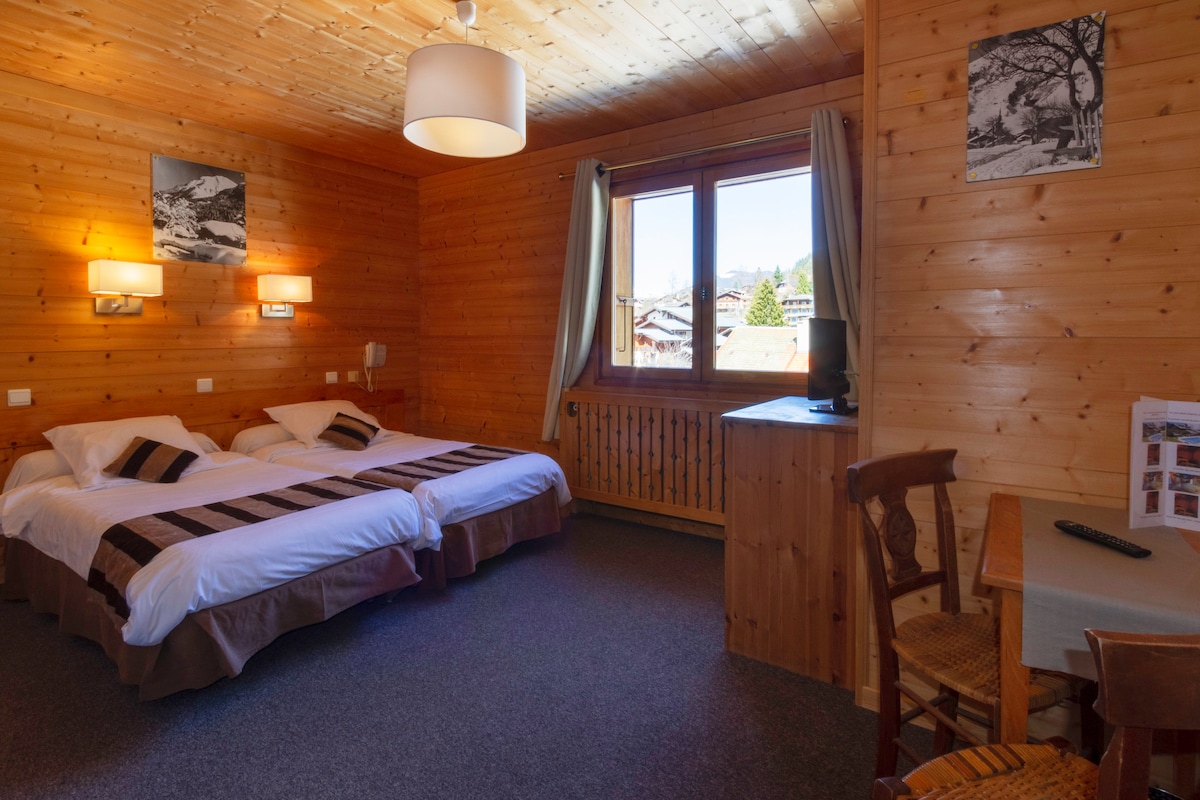 Provided with modern comforts with its flat screen TV and phone, this room has two twin beds that can be put next to each other as well as a beautiful view of the village of Contamines Montjoie.
