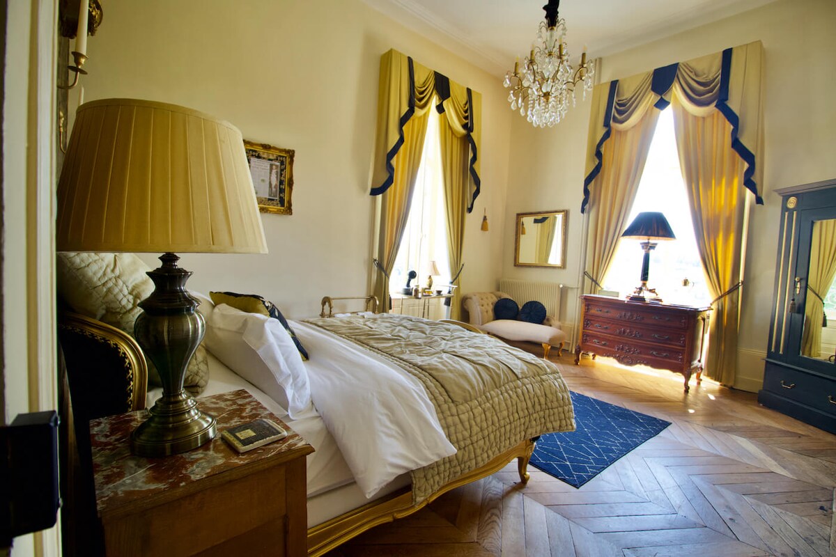 This stylish and unique bedroom sets the stage for a memorable trip at Château les Villettes, set in the heart of Limoges countryside.