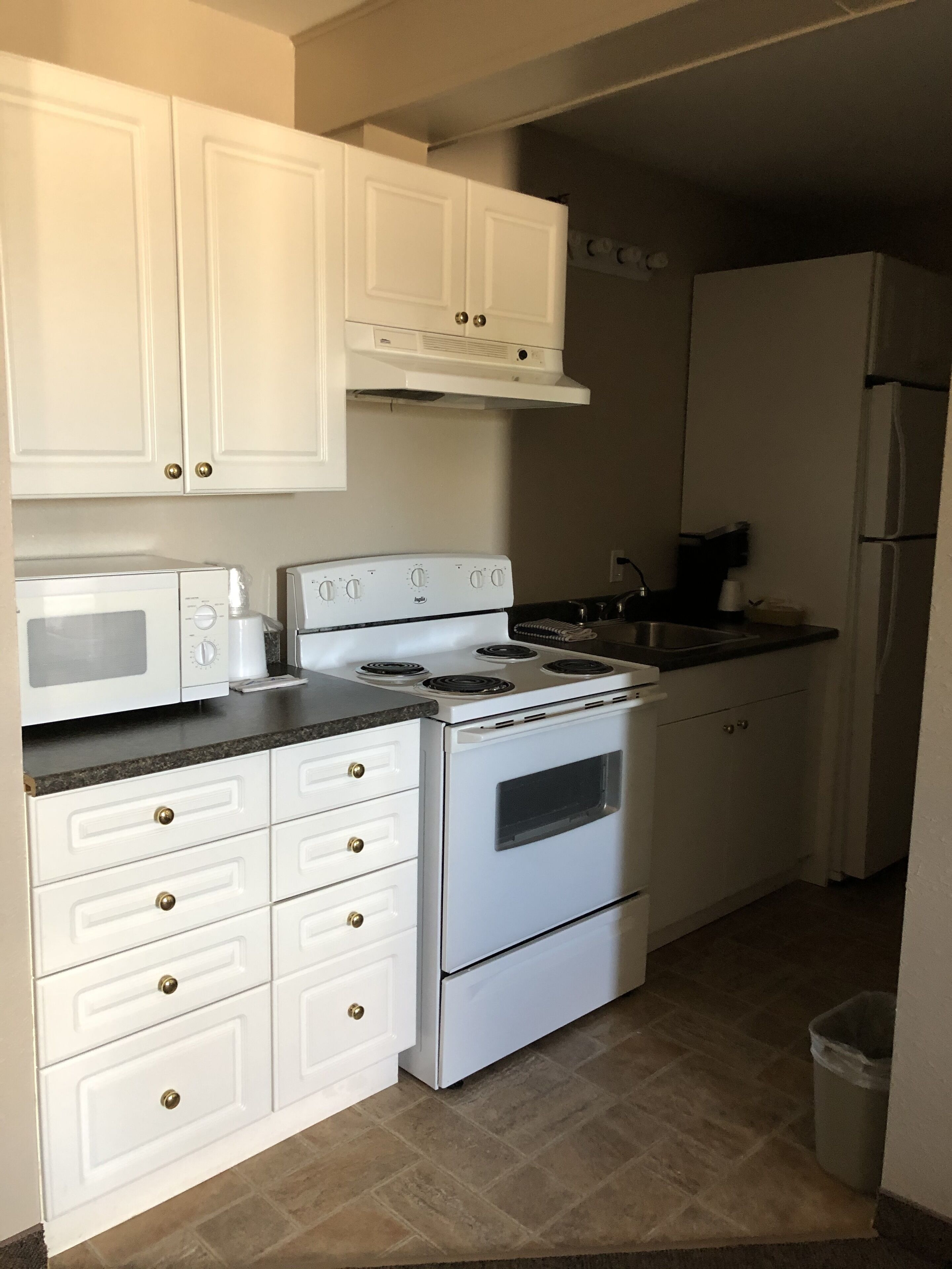 - "My room was excellent. There were 2 TVs, there is a bar style eating area. A wide sofa and a love seat and a table with 2 chairs. The kitchen area had a decent size fridge, stove and microwave and plates and cutlery supplied!" - "I booked a kitchenette room as I was staying for twelve days. The room had a separate bedroom with TV. The kitchen had a full size fridge and stove and had all the necessary pots, plates and cutlery that I needed. I was very happy with the room and will be rebooking here on my next stay. "