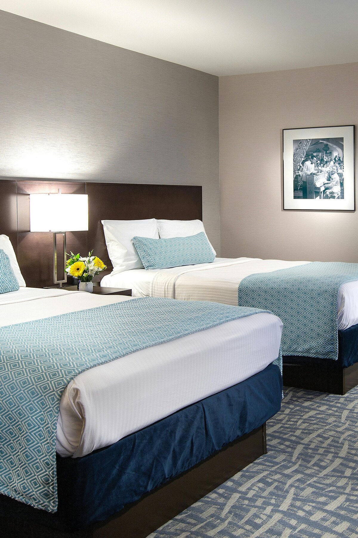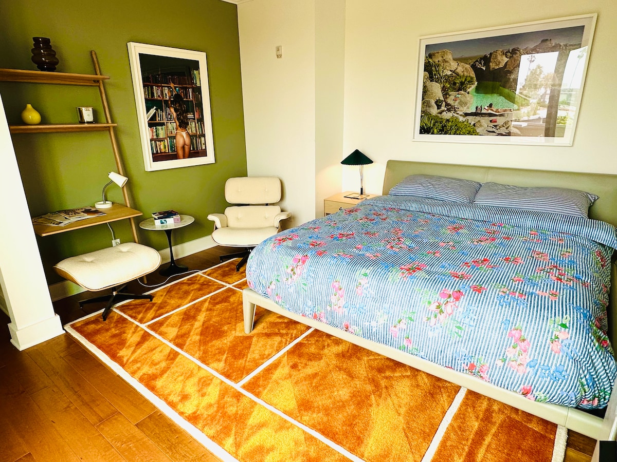 A spacious option for families or traveling friends, our Double Queen Suites are located on the first floor and include a private bedroom with two queen-sized beds; space for relaxing or working; a kitchenette with a Smeg refrigerator; and custom upholstered furniture and specially sourced vintage pieces throughout.