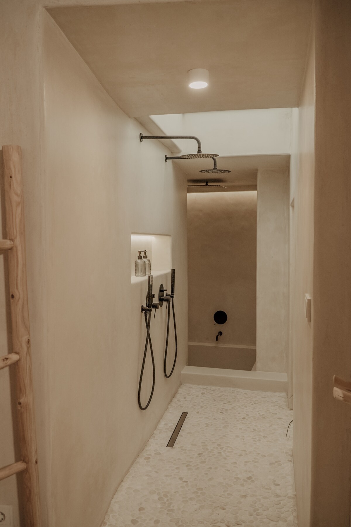 Definitely one of the most acclaimed rooms by our clients. Enjoy a restful rest in its extra large double bed and take in the luxury of an unparalleled bathing experience in its private hamman-inspired water area with a double shower area, pedicurium and concluding in a pool with water outlet in the form of rain. This room has also recovered the arch area of the original house, prior to its restoration.